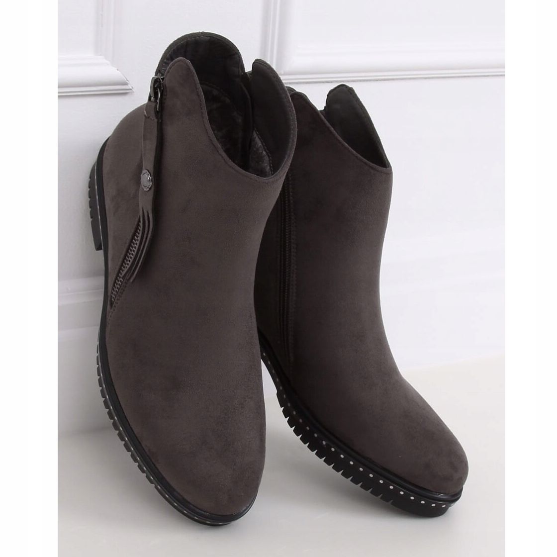 6332 Sive gležnjače su svakodnevna opcija, s okruglim vrhom i ravnom petom visine 3 cm, jamče stabilnost i udobnost pri nošenju. Bez uzorka, u glatkoj nijansi sive, savršeno će se uklopiti u svaki ormar, postajući univerzalni element vašeg stajlinga.