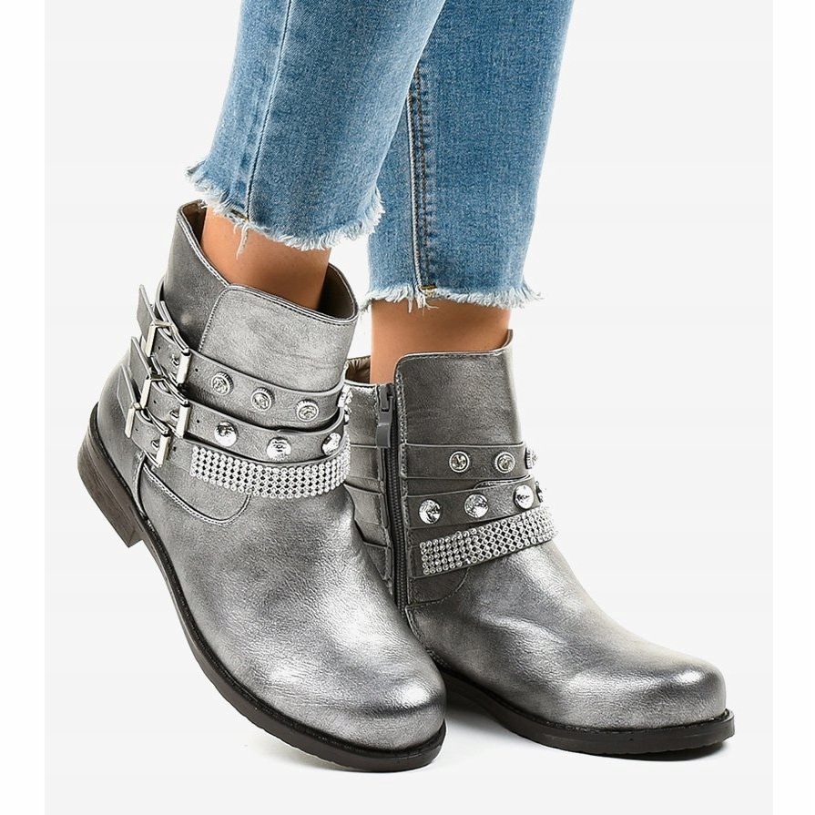 Otkrijte sive gležnjače LL179 koje spajaju eleganciju i udobnost. Ove jedinstvene cipele s ravnim, protukliznim potplatom stvorene su za žene koje se žele istaknuti u svakoj situaciji. Njihova siva i srebrna boja zasigurno će privući pozornost, a bogati ukrasi u obliku štrasa i nitni unijet će malo ludila u vaš outfit.