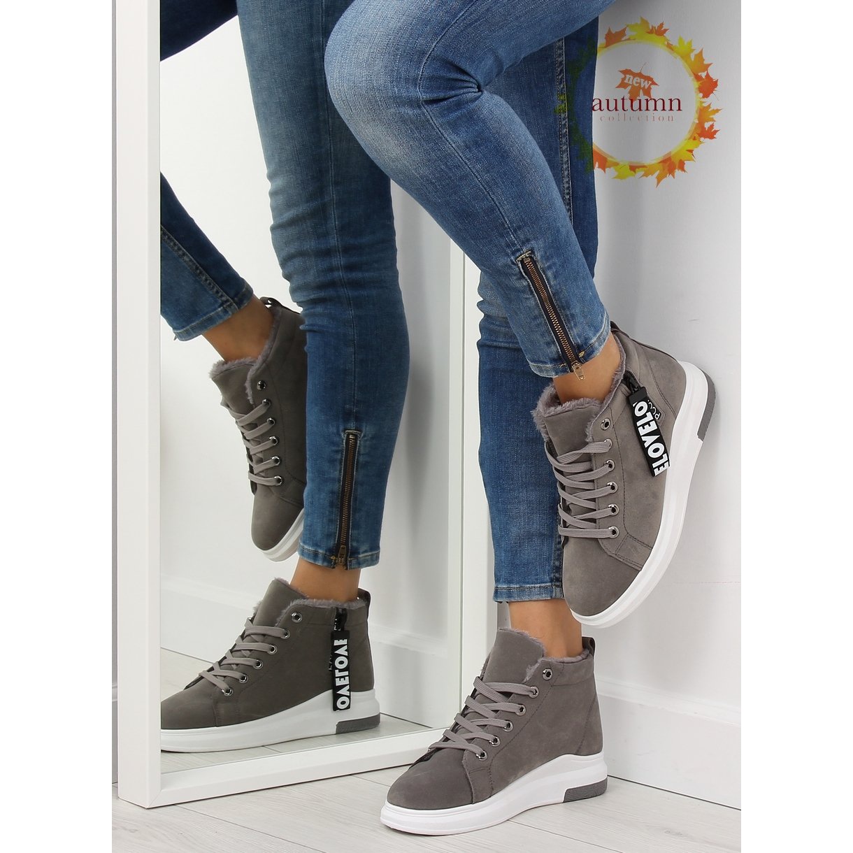 Izolirane sive ženske tenisice 2018-67 sive savršena su kombinacija udobnosti i sportskog stila, savršene za hladnije dane. Izrađene od visokokvalitetnog eko antilop kože, ove tenisice nude ne samo moderan izgled, već i čvrstinu i izdržljivost. Unutrašnjost obuće podstavljena je ugodnim krznom koje stopalima osigurava toplinu i udobnost čak iu zimskim jutrima.