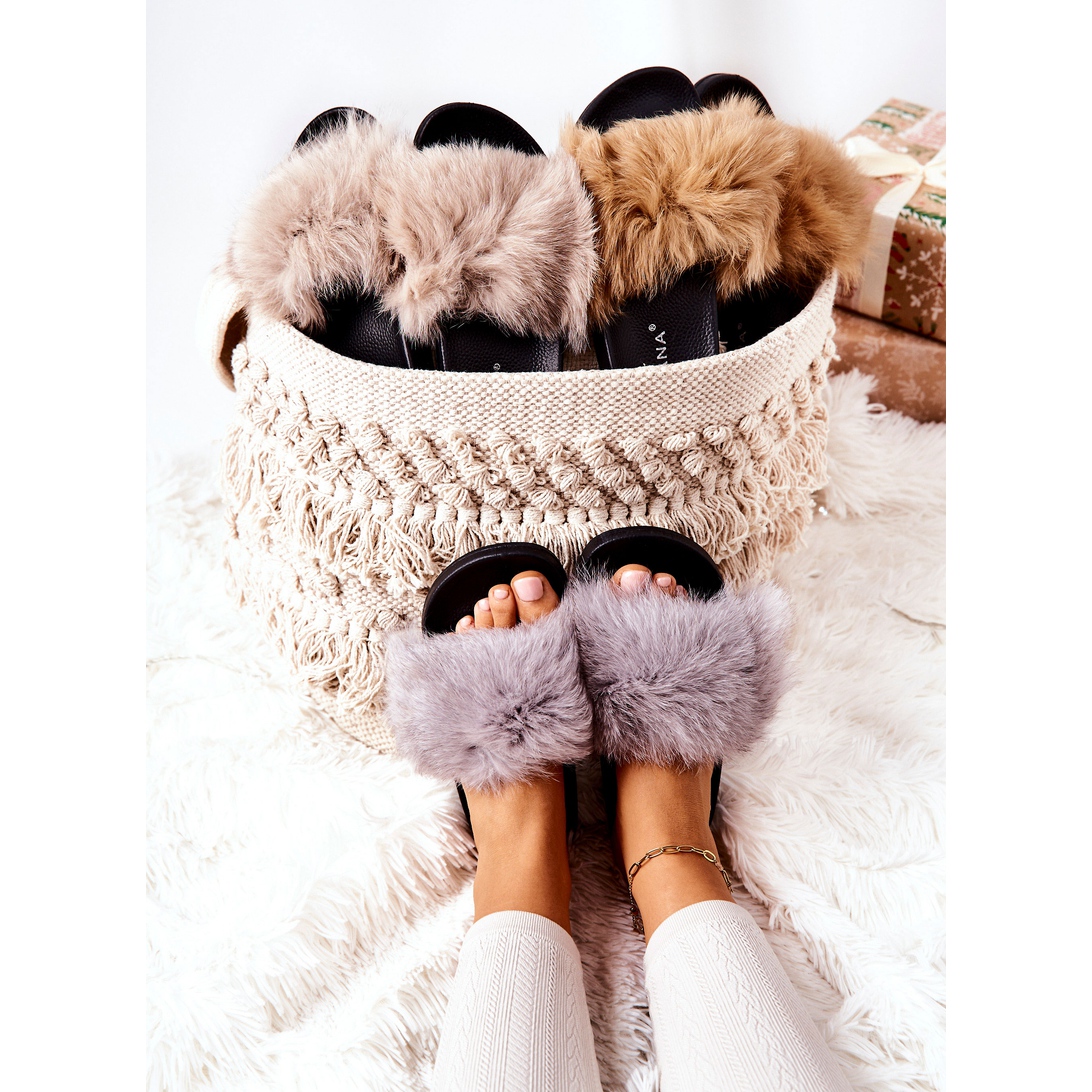 PG2 PG2 Sive Naturimo sive papuče s prirodnim krznom siva