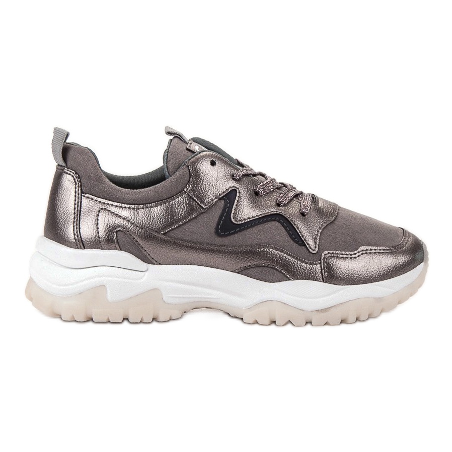 Cipele su izrađene od visokokvalitetnih materijala, što jamči ne samo atraktivan izgled, već i izdržljivost. Njihova siva boja univerzalni je prijedlog koji se lako uklapa u razne stilove. Dodatni metalik akcenti i svjetlucavi uzorak daju im moderan i moderan karakter.