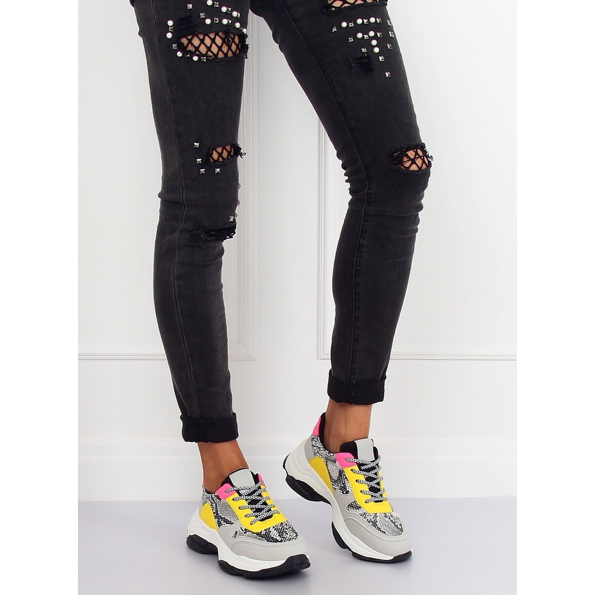 Pojedinosti: Sive sportske cipele od zmijske kože BL169P siva višebojan