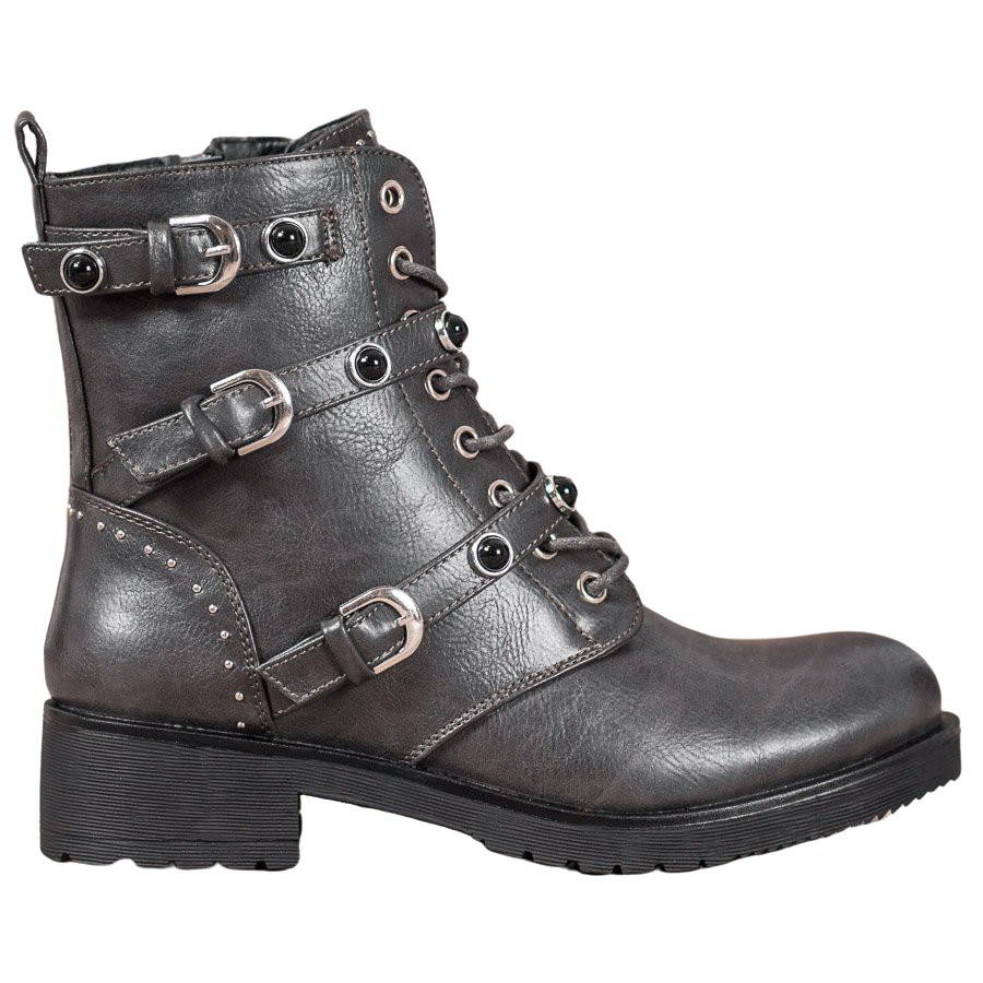 Elegantne Cm Paris radnice u sivoj boji savršen su izbor za žene koje žele spojiti udobnost s modernim izgledom. Njihov gornji dio koji seže iznad gležnja, kombinacija vezanja i patentnog zatvarača sa strane čine ih ne samo estetskim, već i funkcionalnim. Ukrasni remeni s kopčama ukrašeni kamenčićima daju im rock karakter koji se savršeno uklapa u aktualne trendove.