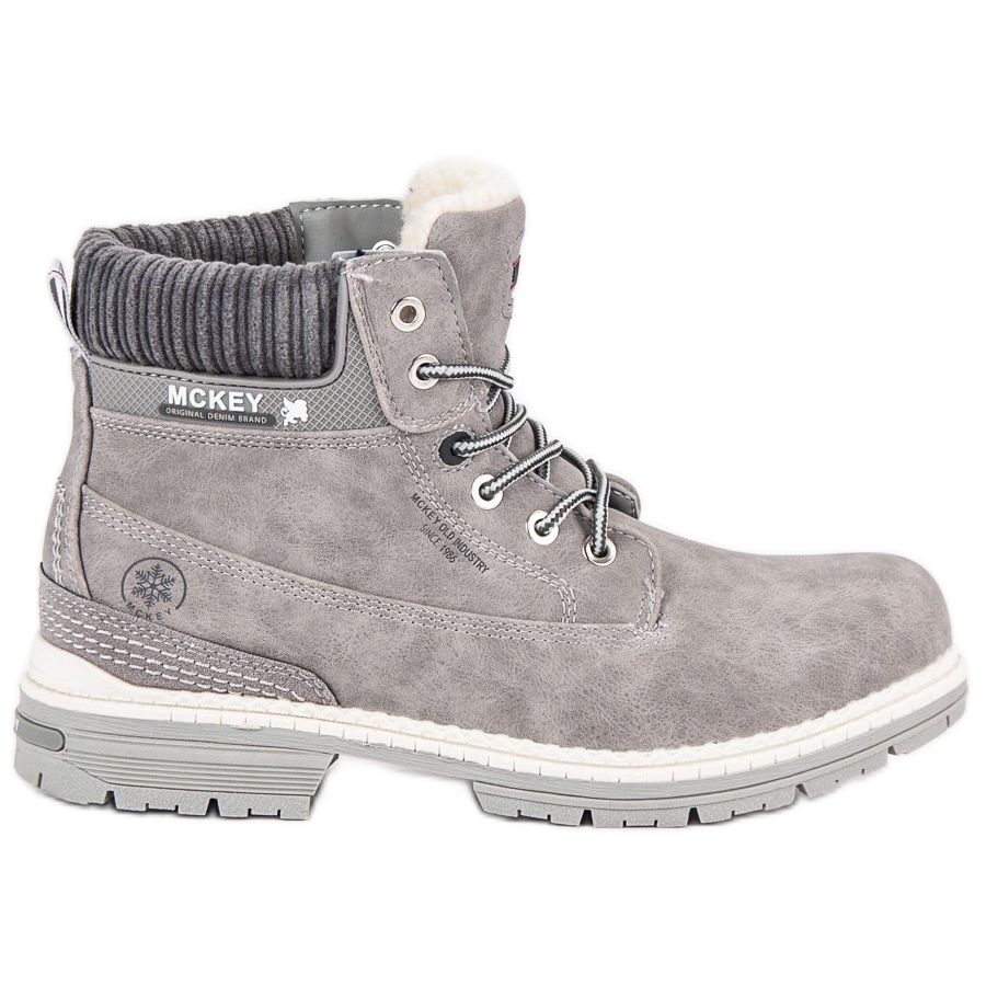 Upoznajte McKey Grey ženske trapperice - savršen izbor za hladne jesenske i zimske dane! Ove elegantne čizme izrađene su od visokokvalitetne ekološke kože koja ne samo da odlično izgleda, već i učinkovito štiti od nepovoljnih vremenskih uvjeta. Zahvaljujući izduženom kroju koji seže iznad gležnja, pružaju izvrsnu zaštitu i udobnost.