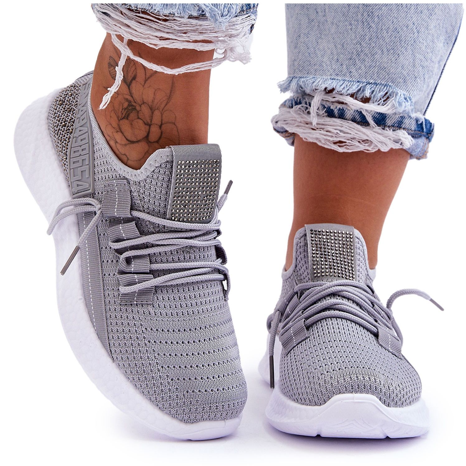 Moderne, ugodne ženske tenisice PM1 u univerzalnoj sivoj boji. Izrađene od tekstilne tkanine, dizajnirane kao umetnute ukrasnim vezanjem - svakodnevno kombiniraju udobnost upotrebe sa sportskim stilom.