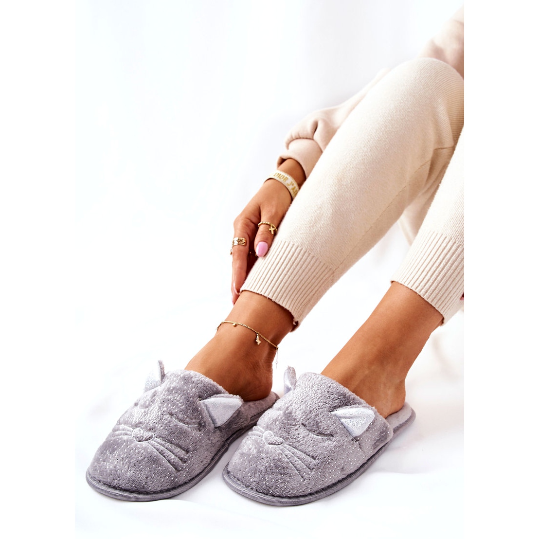 PE1 PE1 Sjajne papuče za mačiće sa sivim Kaisy ušima siva