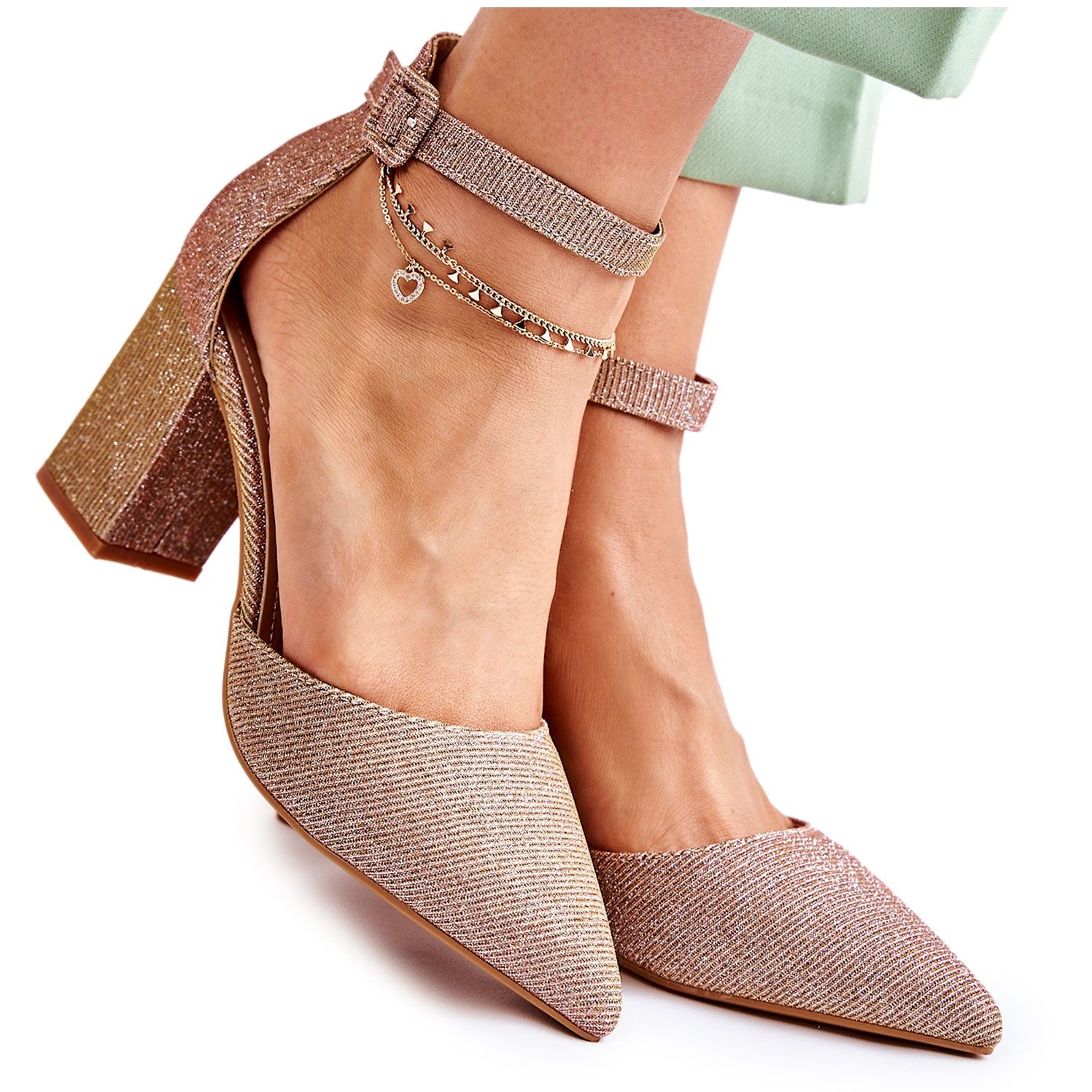 Pumpice se pričvršćuju podesivim remenom s kopčom, što jamči pravilno pristajanje uz nogu. Zahvaljujući šiljastom vrhu i elegantnoj, stabilnoj blok peti, ove cipele naglašavaju svaku figuru, a istovremeno osiguravaju udobnost nošenja. Izrađene od visokokvalitetne tkanine i s uloškom od ekološke kože, Amira salonke savršen su prijedlog za žene koje cijene moderan dizajn.