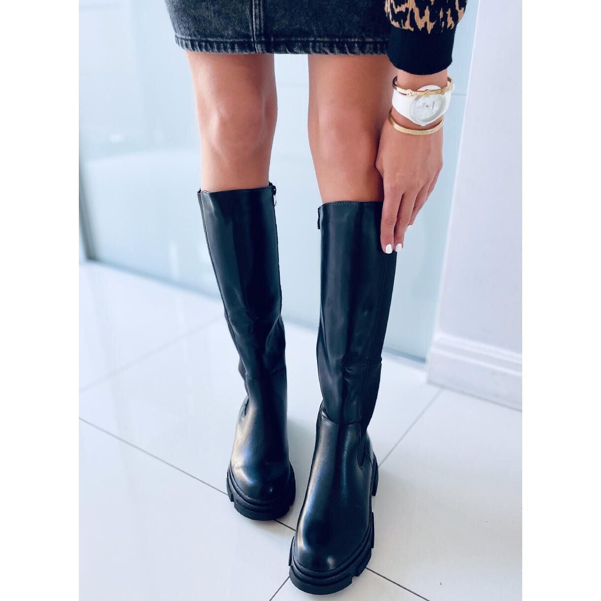 Skylar crne ženske čizme - Crne čizme na debelom potplatu koji kombiniraju vojni lik s svakodnevnom udobnošću. Minimalistički rez s fleksibilnim umetom nalikuje Jodhpur čizmama, a patentni zatvarač pune duljine na gornjem dijelu osigurava brzo i ugodno stavljanje. Izrađena od ekološke kože, unutrašnjost je obložena mekog krzna - savršena za hladnije dane.