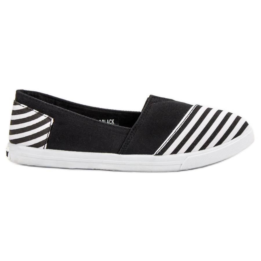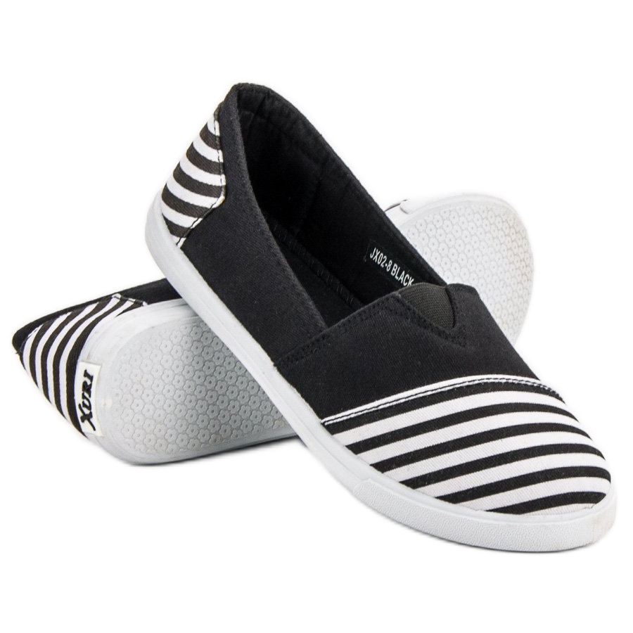 Njihov karakterističan dizajn ističe se zanimljivom kombinacijom jednolične crne s crno-bijelim prugama koje se nalaze na prstima i oko pete, što ih čini modernim i originalnim. Slip-on kopča osigurava lako i brzo obuvanje i skidanje, a mekana potpetica osigurava udobnost tijekom nošenja.