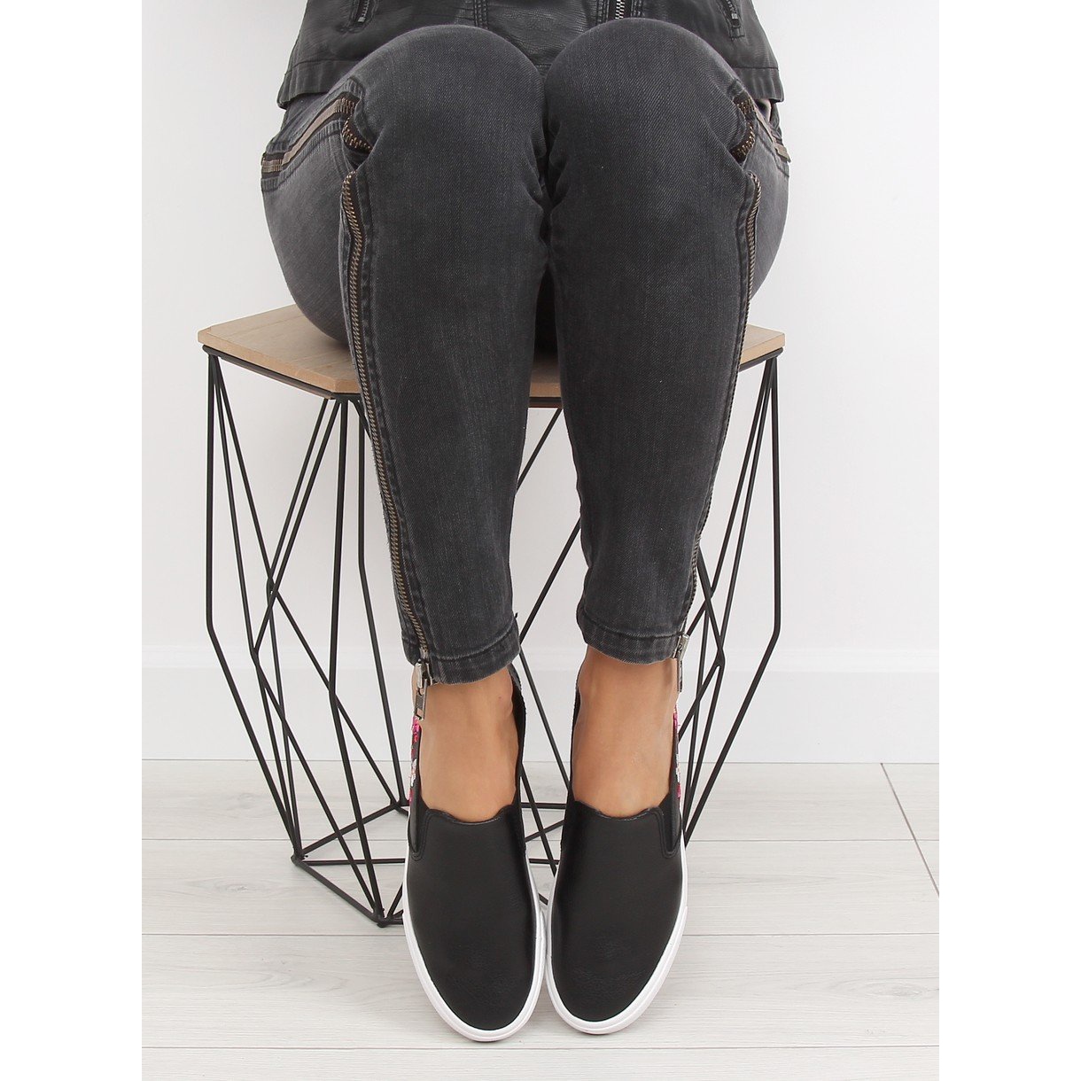 G1204A Crne crne gaćice s nježnim vezom savršen su izbor za svaku ženu koja cijeni stil u kombinaciji s udobnošću. Izrađene od mekane ekološke kože, savršeno prianjaju uz stopalo, osiguravajući udobnost tijekom cijelog dana. Unutrašnjost cipela podstavljena je tkaninom što doprinosi užitku nošenja, a zahvaljujući slip-on kopčanju, slipone je izuzetno lako obuvati i izuvati.