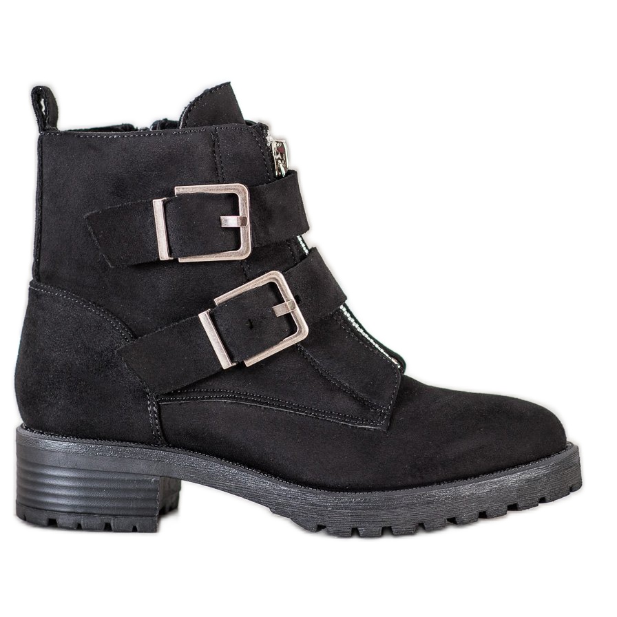 Gornjište je izrađeno od visokokvalitetne ekološke antilop kože, koja im daje ne samo moderan izgled, već i izdržljivost. Unutar ćete pronaći tekstilni umetak koji osigurava udobnost nošenja tijekom cijelog dana. Ukrasne kopče i patentni zatvarač torbama daju jedinstveni stil, a njihova klasična crna boja pristaje uz razne kombinacije odjeće.