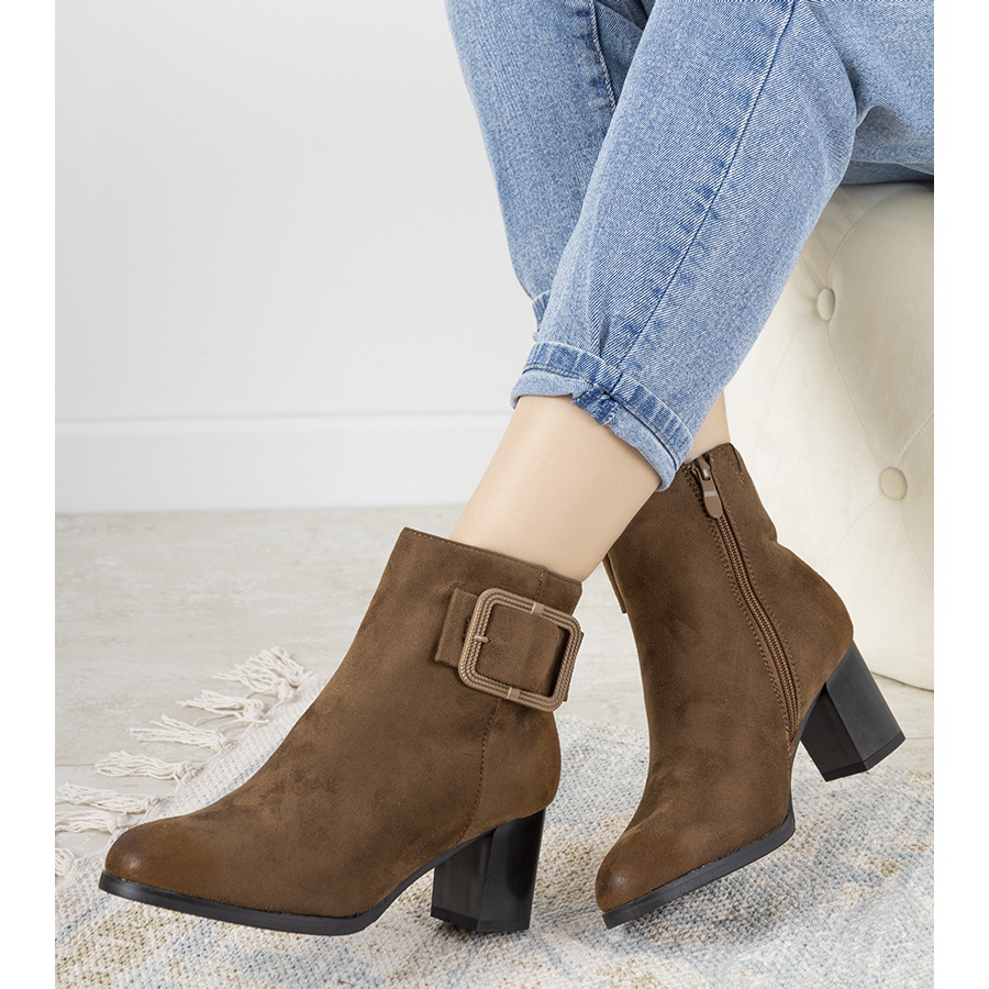 Smeđe Carrillo gležnjače na visoku petu iznimno su elegantan i udoban izbor za nadolazeću sezonu. Izrađene od visokokvalitetne antilop ekološke kože, ove elegantne cipele s osjetljivim ogrebotinama zasigurno će privući pozornost.