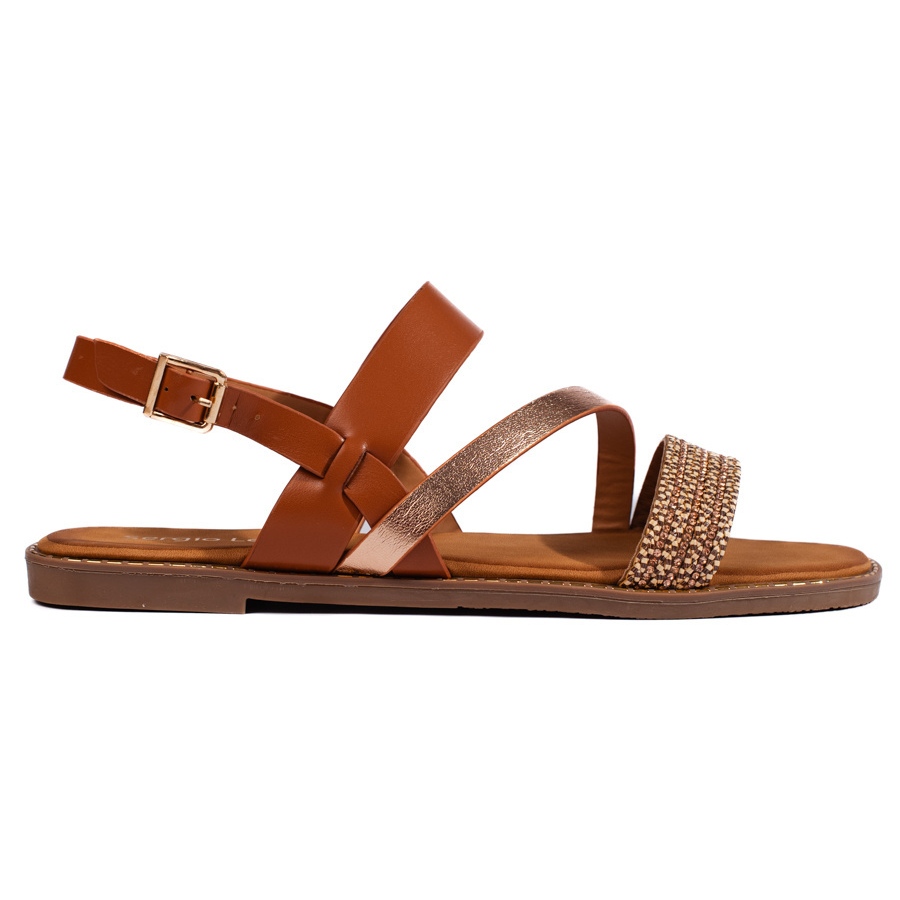 Otkrijte eleganciju i jedinstven stil sa smeđim zlatnim ženskim sandalama iz Sergia Leonea. Ove klasične sandale kombiniraju modu i udobnost, idealno za večernje izlete, događaje i proslave. Izrađena od visokokvalitetne ekološke kože, duže osigurati udobnost i izdržljivost.