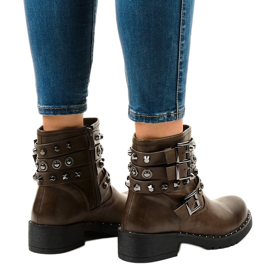 Predstavljamo smeđe izolirane čizme 77-8 u zelenoj boji - savršen izbor za svaku modnu ženu koja cijeni kombinaciju udobnosti, stila i praktičnosti. Ove unikatne čizme, izrađene od visokokvalitetnog materijala nalik na kožu, ističu se elegantnim smeđim gornjištem, ukrašenim širokim remenima te ukrasnim nitnama i kopčama.