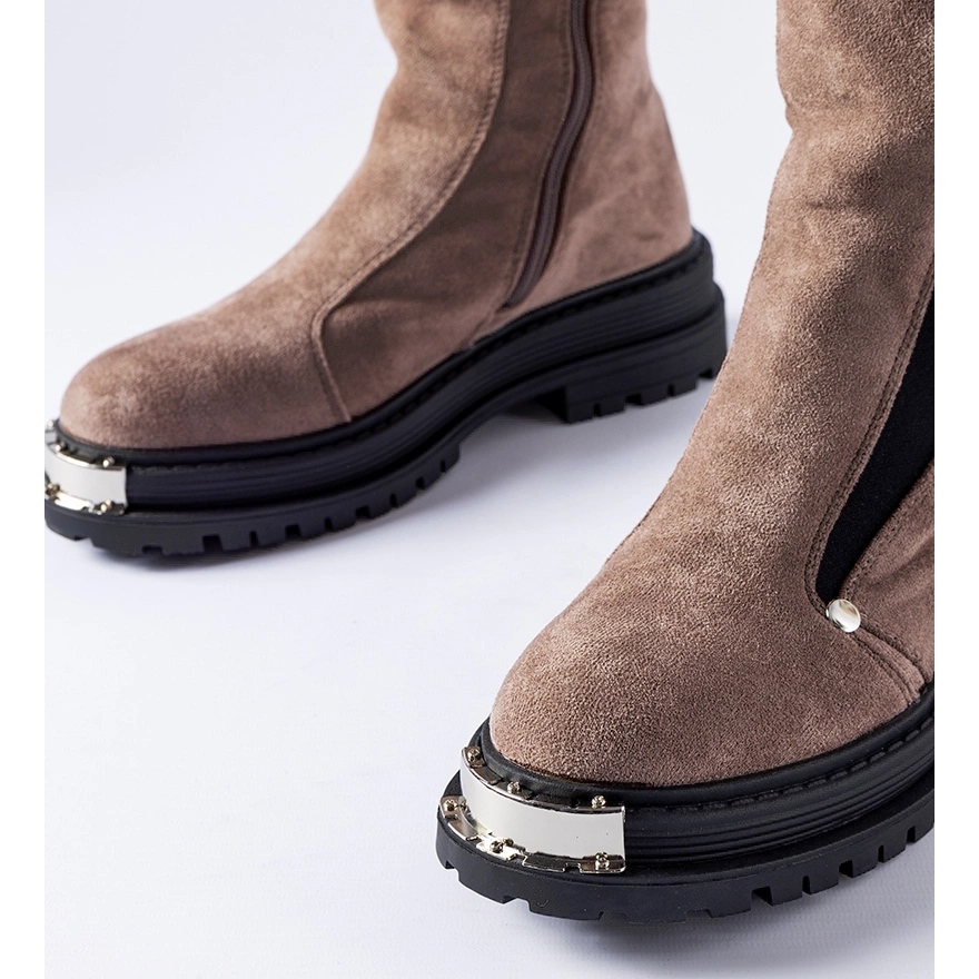Smeđe izolirane čizme s ukrasnim nosom Bologne - Model NC1306