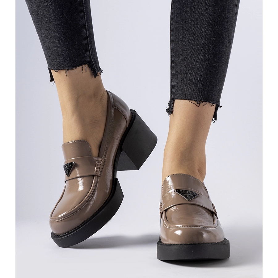 Lakirana površina tamno-smeđe boje daje ovim cipelama jedinstveni sjaj i stil, čineći ih nezaobilaznim elementom vaše ljetne garderobe. Okrugli vrh suptilan je naglasak koji unosi eleganciju i čini da se ovaj model savršeno uklapa u različite stilove - od casual do elegantnijih.