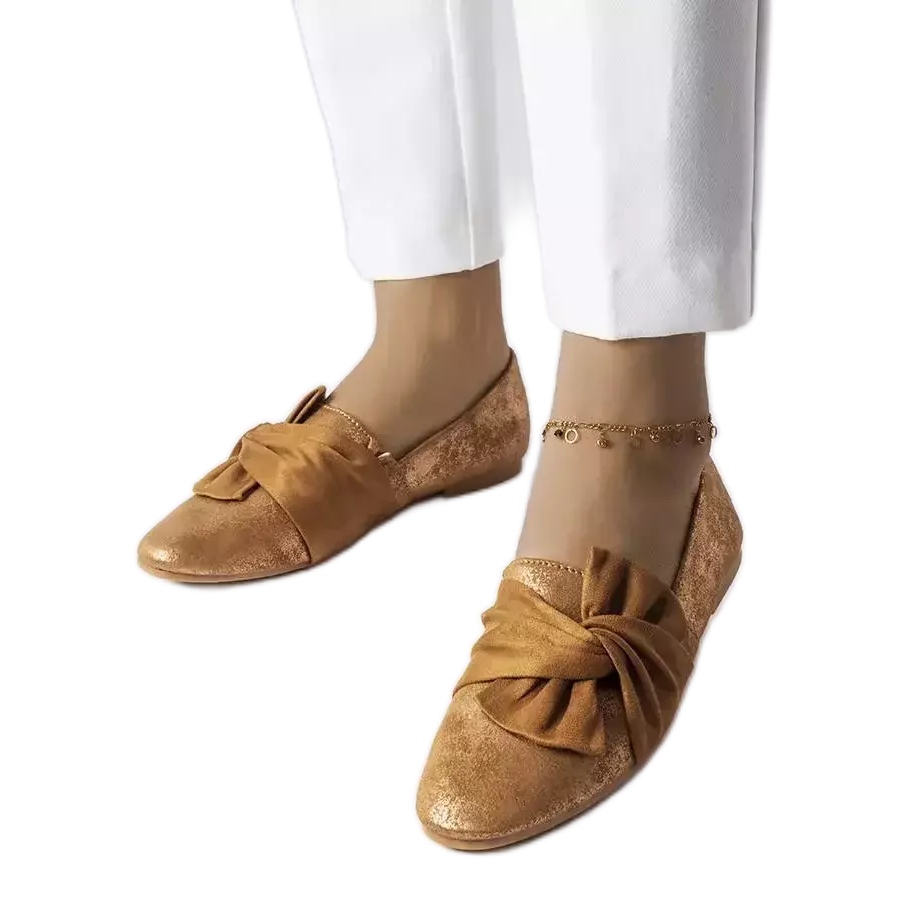 Smeđe metalik balerinke s mašnom iz Dodiera zlatni