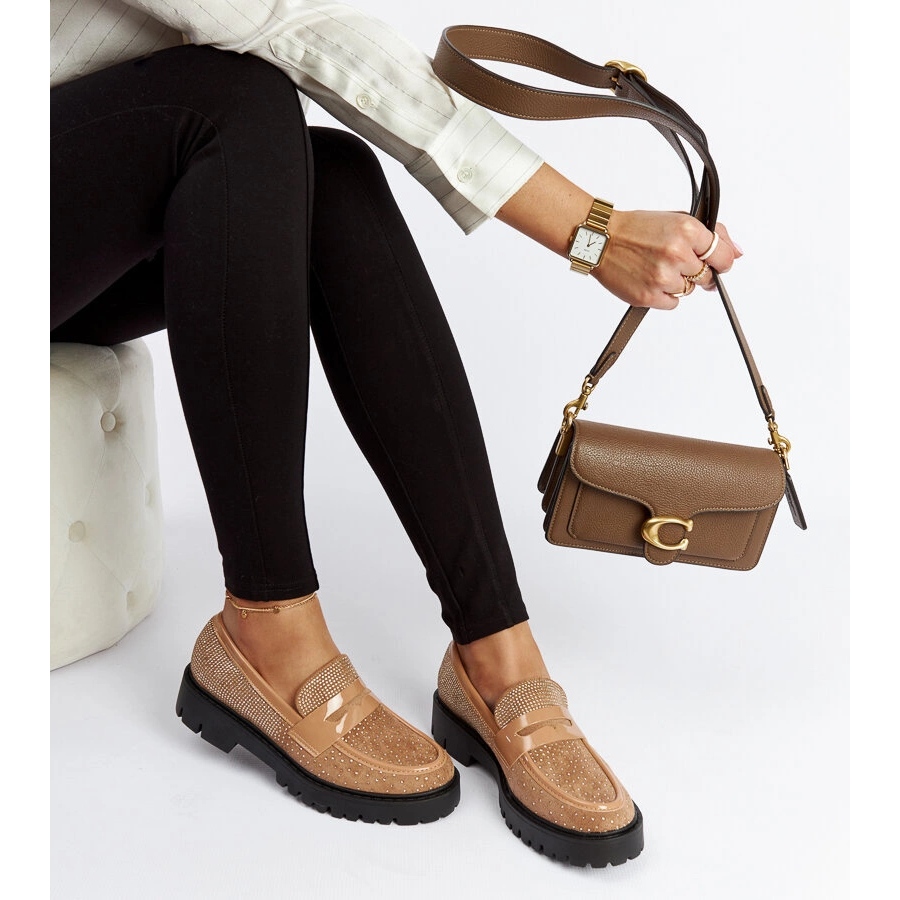 Detalji: Smeđe mokasinke ukrašene Newport kamenčićima smeđa