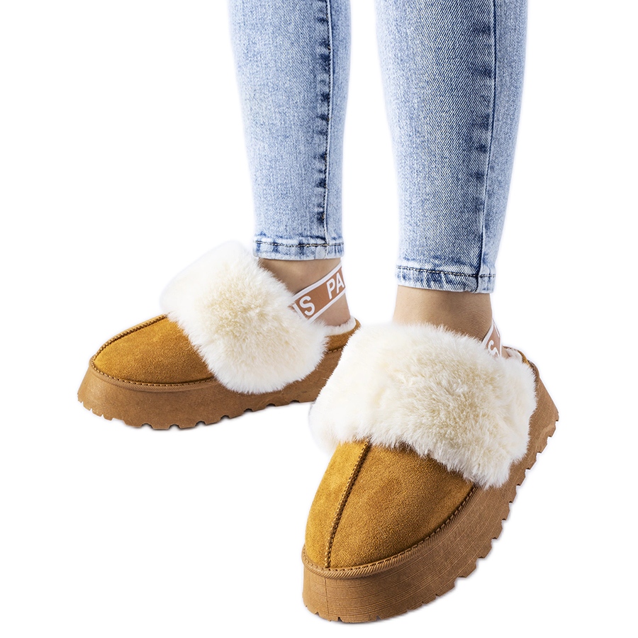 Elegantne i praktične ženske papuče iz jesenske kolekcije. Izrađene od visokokvalitetnih tkanina, s mekim, laganim krznom iznutra, što jamči izvrsno zagrijavanje i ugodan osjećaj topline. Fleksibilna elastika na gornjem dijelu olakšava umetanje i skidanje, istovremeno održavajući stabilnu stanu za stopalo. Klasična, okrugli nožni prst i prigušena deva (smeđa) boja čine model da se dobro miješa s raznim svakodnevnim stilizacijama.