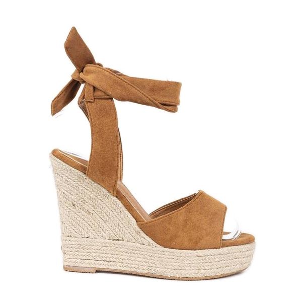 Pojedinosti: Smeđe sandale na klin iz blagdanskog vremena smeđa