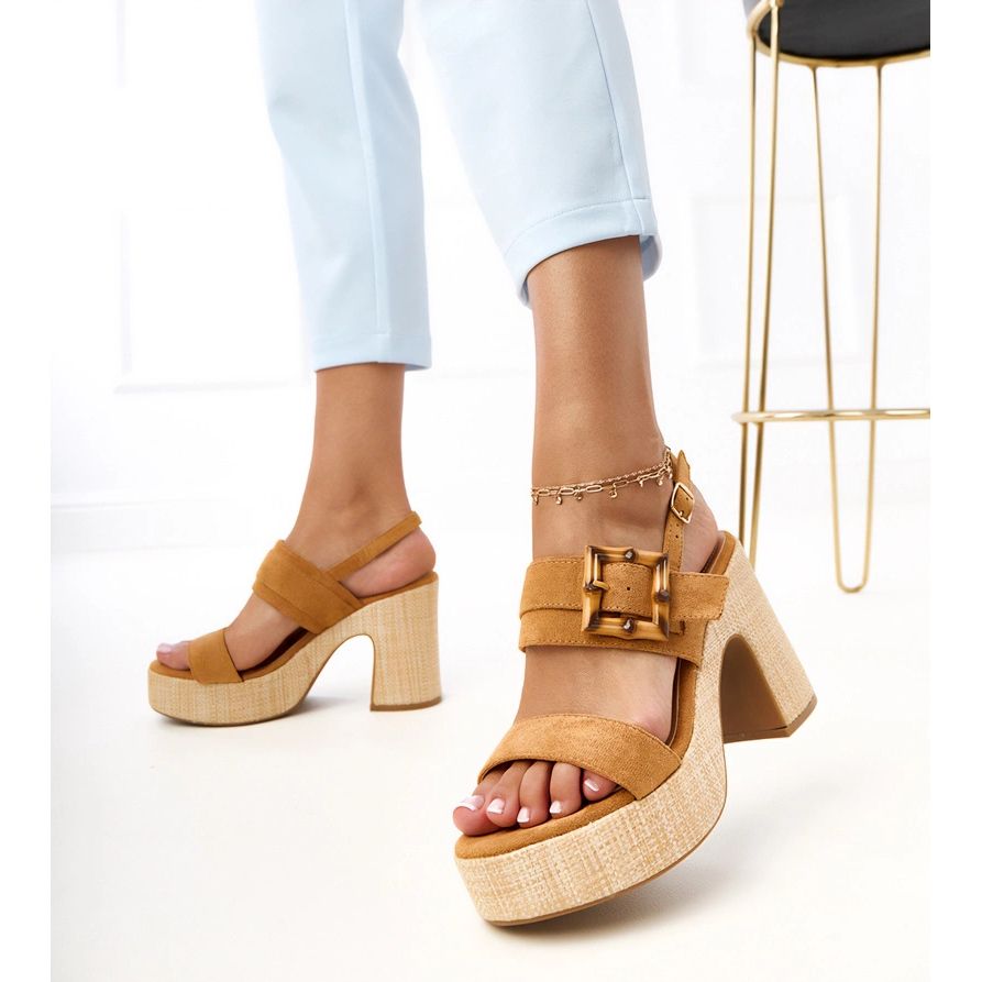 Inna marka Smeđe sandale na stanici ukrašene stezaljkom Eligera smeđa