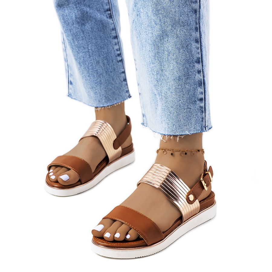 Smeđe sandale s metalik Larochelle umetkom smeđa zlatni