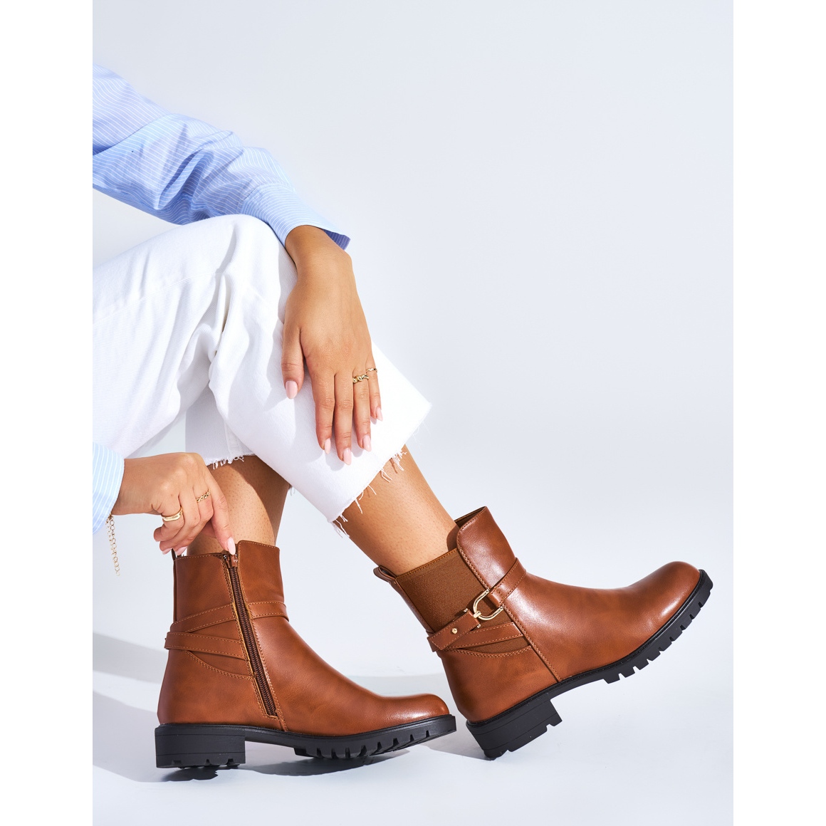 Inna marka Smeđe ženske gležnjače s ukrasnom kopčom smeđa