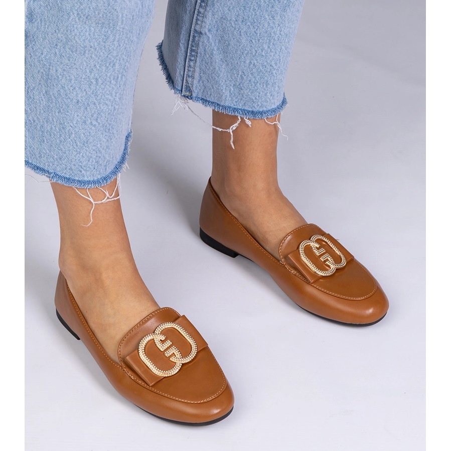 Mokasine se razlikuju klasičnim rezom i pažljivim performansama. Ravne pete s visinom od 1 cm i umetnutim stilom osiguravaju jednostavnost stavljanja i maksimalne udobnosti duže vrijeme. Bademovi nožni prst dodaje cijeli par elegancije, a zlatni ukras s cirkonima privlači oko, dajući cipelama jedinstven karakter.