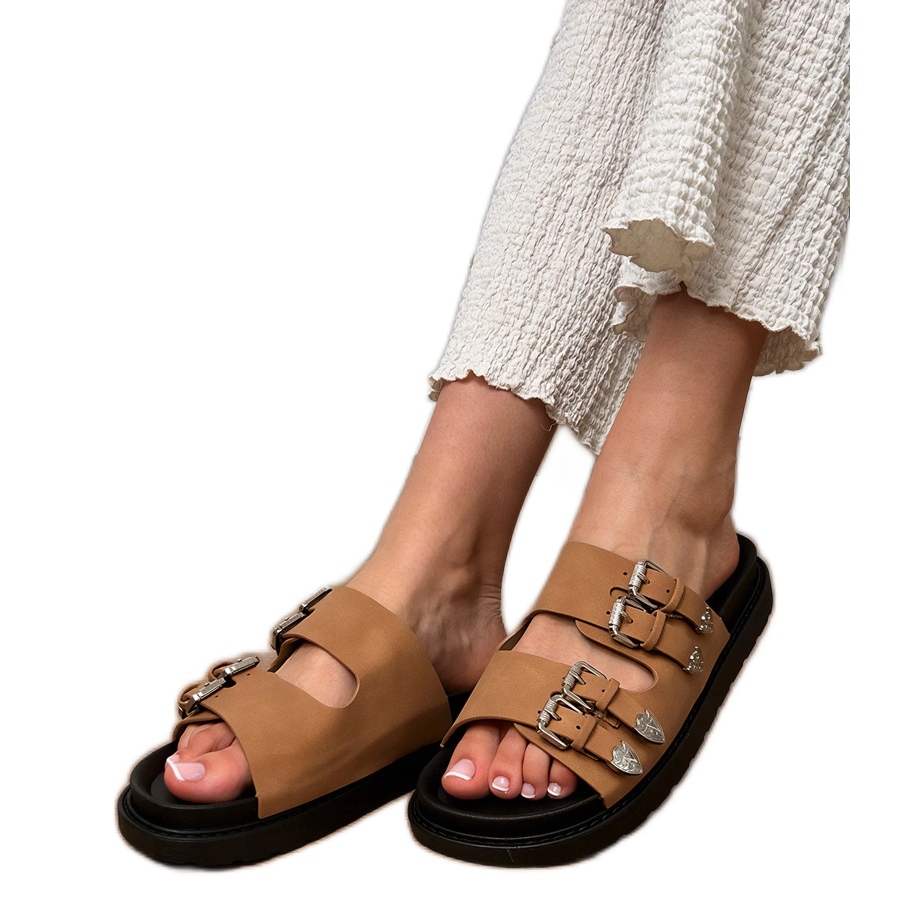 Inna marka Smeđe ženske papuče s ukrasnim kopčama bež