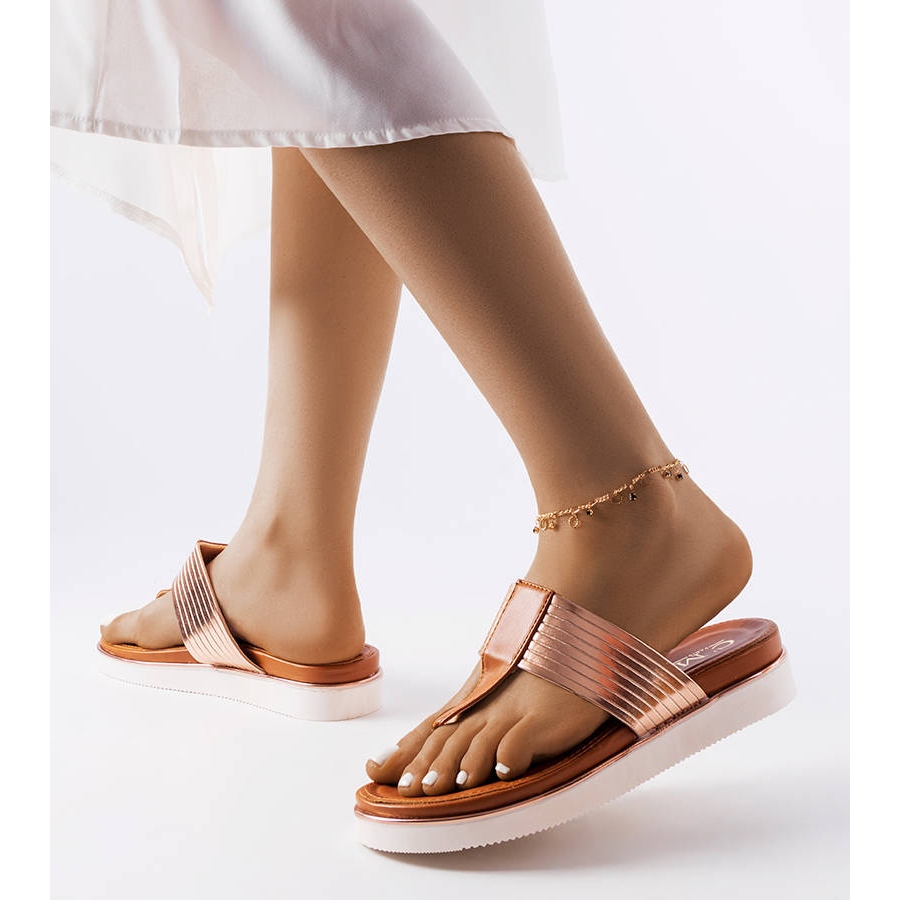 Otkrijte jedinstvenu udobnost i stil sa smeđim metalik toboganima Murilo u zlatnoj boji iz Inne. Ove elegantne japanke savršen su izbor za žene koje cijene udobnost i moderan izgled. Kreirane su za svakodnevni stil, savršene za ljetne, casual outfite.