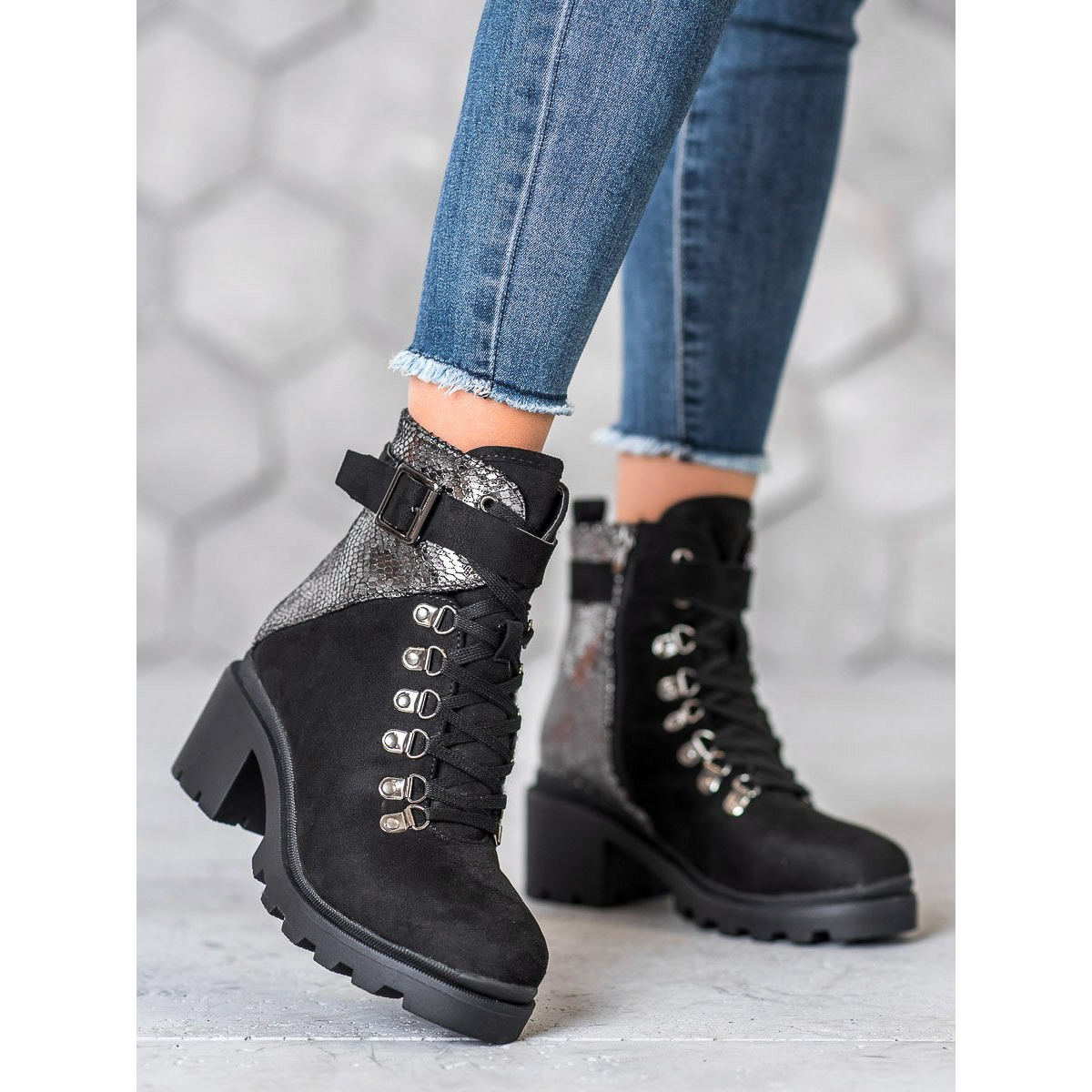 Čizme su opremljene platformom visine 2 cm i udobnom širokom petom visine 6 cm, što osigurava stabilnost i udobnost tijekom cijelog dana. Vezanje, patentni zatvarač i ukrasni remen s kopčom nisu samo praktična rješenja, već i stilski detalji koji razlikuju ove cipele od drugih.