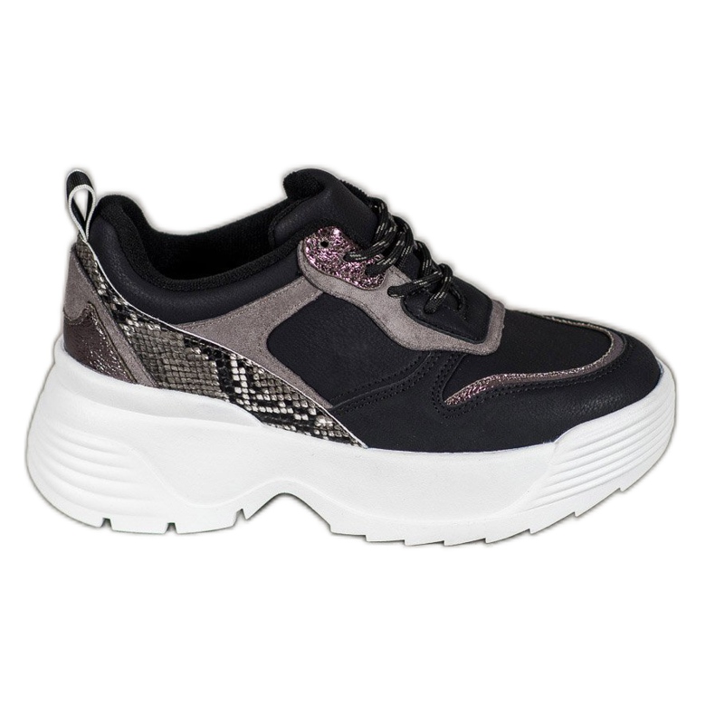 VICES tenisice s platformom u crnoj boji iznimno su elegantan prijedlog za žene koje žele spojiti udobnost s modernim izgledom. Ove jedinstvene cipele odlikuju se ne samo elegantnim dizajnom, već i originalnim zmijskim umetcima koji dodaju karakter i privlače pažnju.