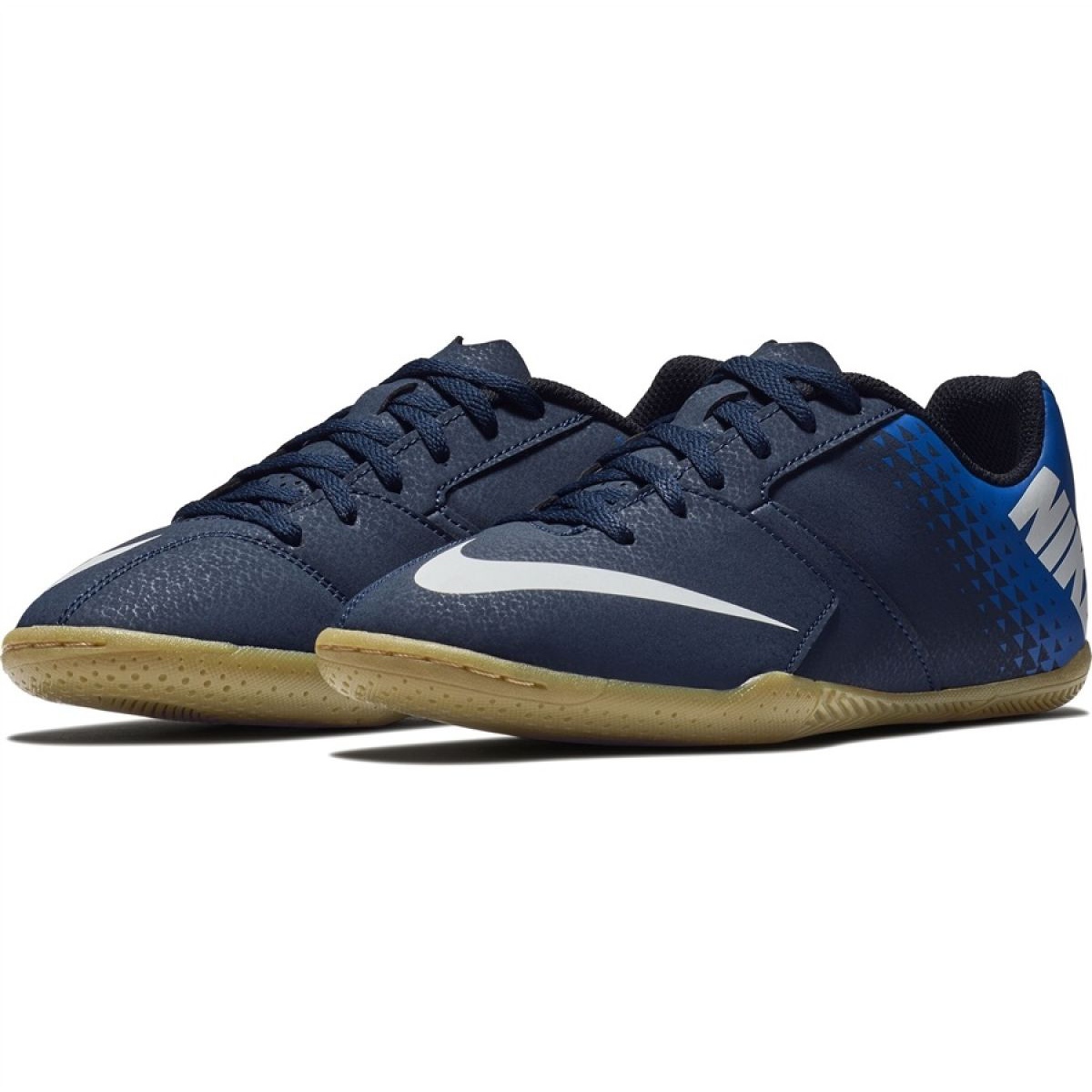 Predstavljamo tenisice za dvoranu Nike Bombax Ic Jr 826487-414 elegantne tamnoplave boje, savršene za mlade nogometaše. Ove niske tenisice za dvoranu dizajnirane su za maksimalnu izvedbu na terenu, kombinirajući sportski izgled s izdržljivim stilom.