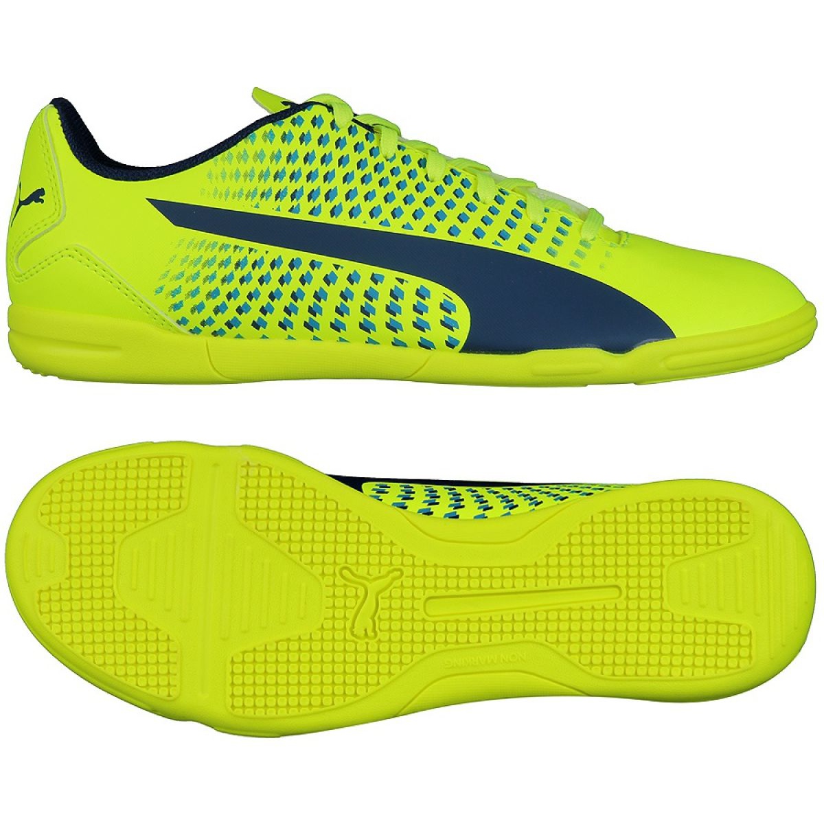 Puma Adreno III IT M 10404709 dvoranske tenisice izvrstan su izbor za svakog nogometnog entuzijasta koji traži udobnost i performanse na terenu. Ove niske kopačke za dvoranski nogomet, dostupne u dinamičnim bojama žute i zelene, odlikuju se modernim dizajnom i korištenjem inovativnih tehnologija koje povećavaju udobnost igre.
