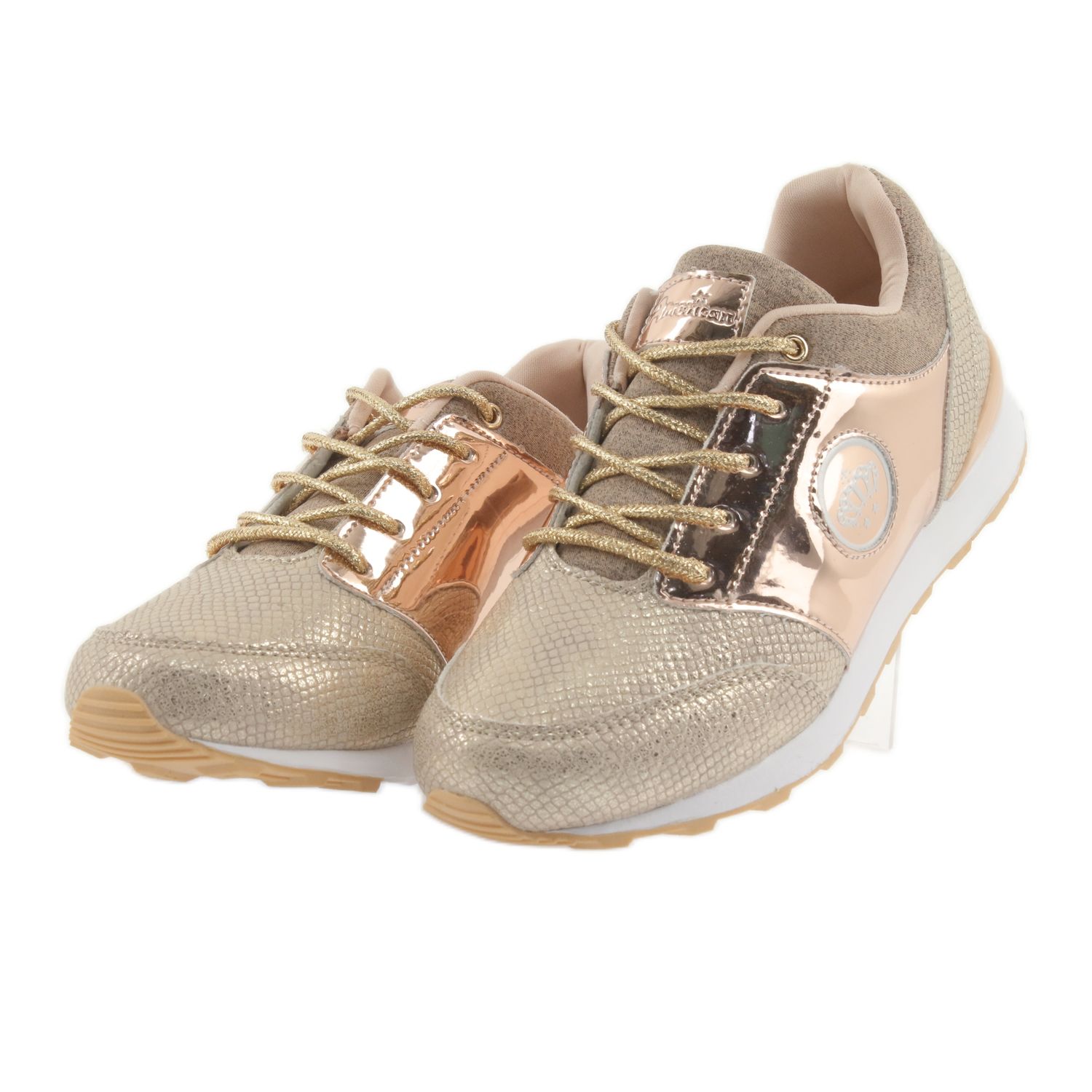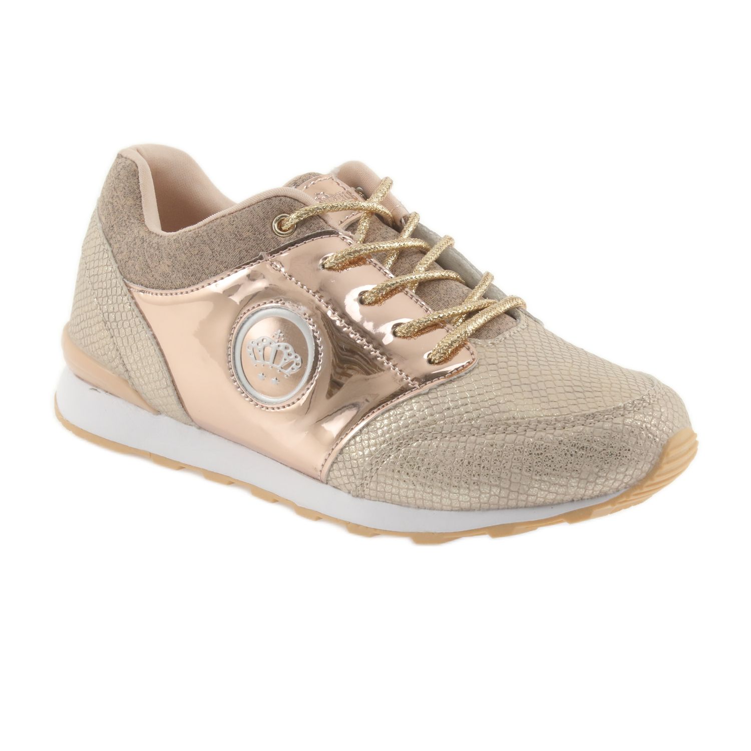 AMERICAN CLUB ES10 zlatne sportske tenisice za trčanje savršen su izbor za aktivne djevojke koje cijene stil i udobnost. Izrađene od visokokvalitetne ekološke kože, spajaju izdržljivost s estetikom, a pritom osiguravaju sigurnost tijekom korištenja.