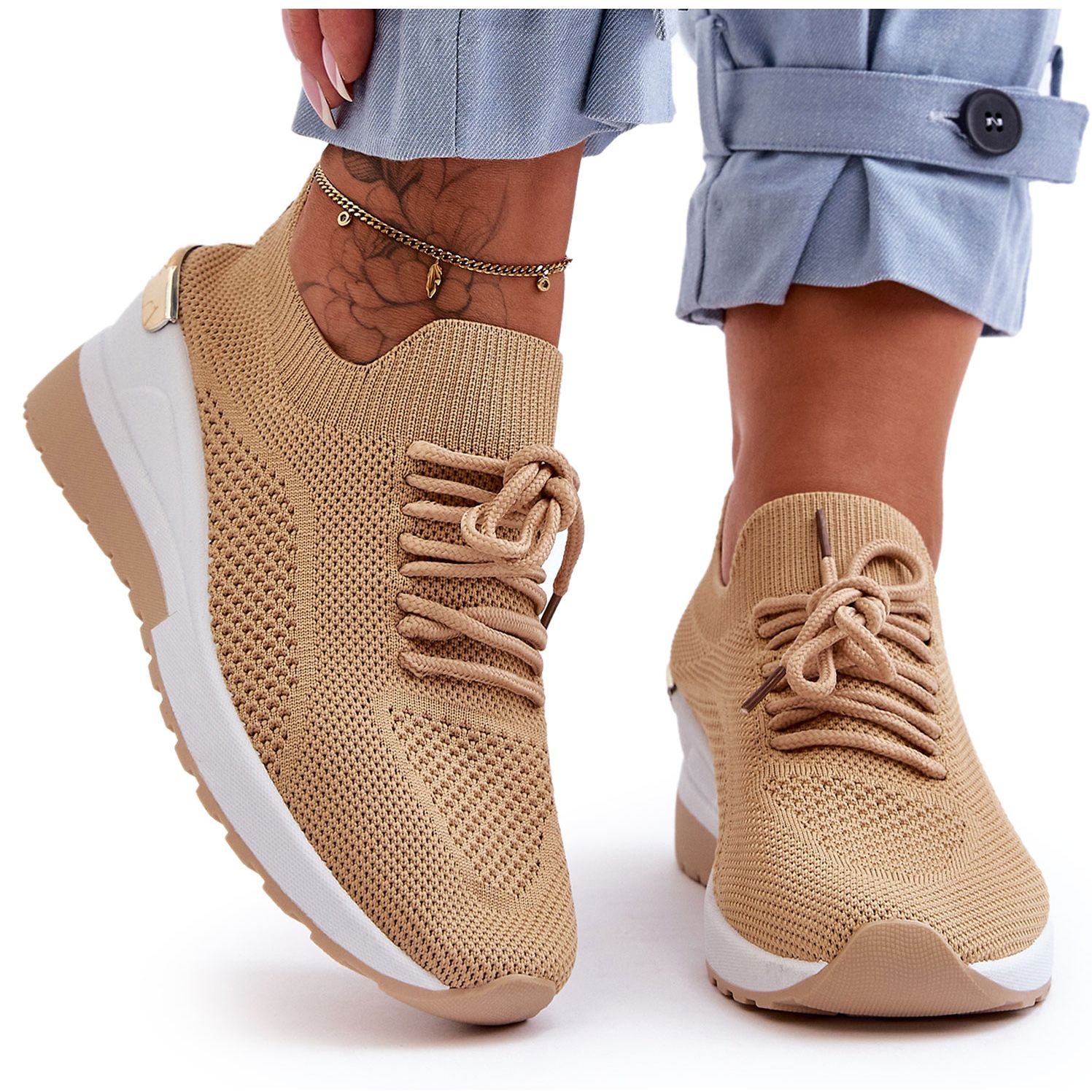 PG1 Materijal ubijene sportske cipele za klin - bež (kaki) uz dodatak zlata