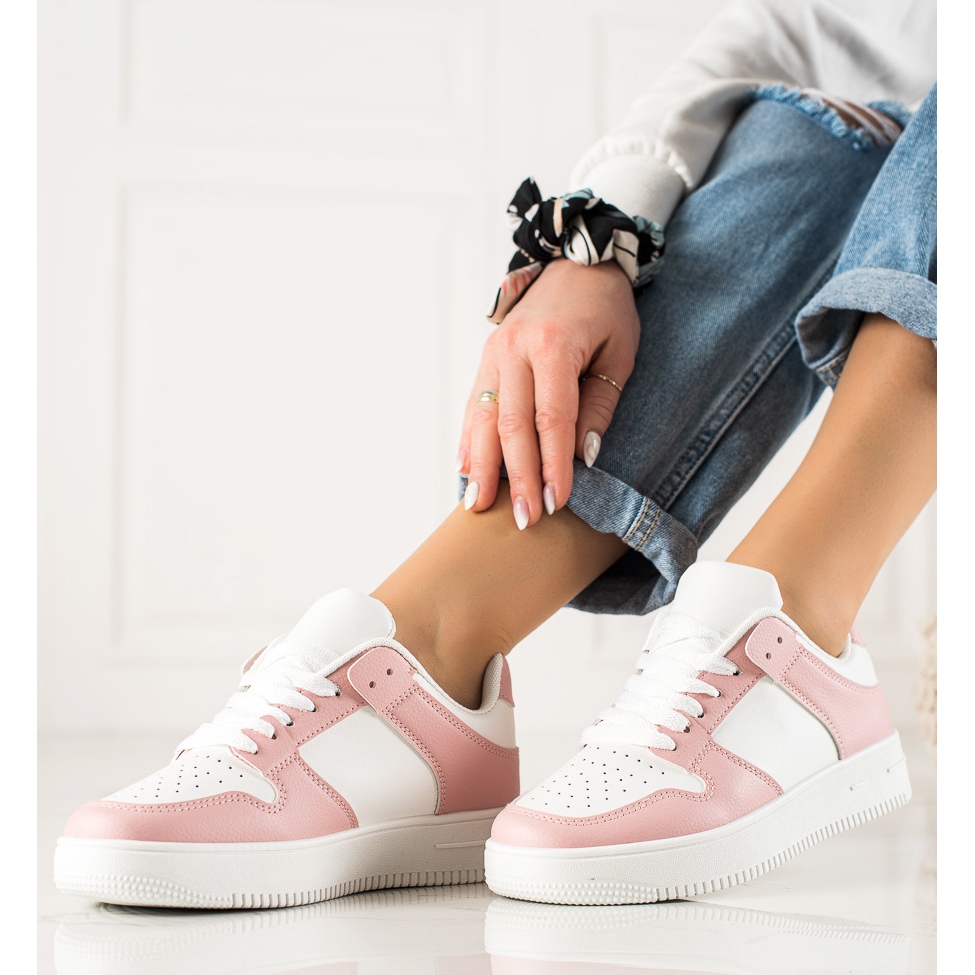 Trendi sportske cipele s eko kožom - bijela/ružičasta