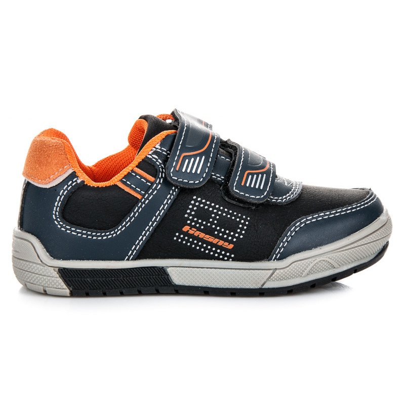 Praktične i udobne dječje cipele Hasby izrađene od ekološke kože u elegantnoj crnoj boji sa suptilnim dodacima sive i narančaste. Kopča se dvostrukim čičkom, što olakšava brzo obuvanje i osigurava čvrsto držanje stopala - savršeno za svakodnevnu upotrebu, za školu i igrališta.