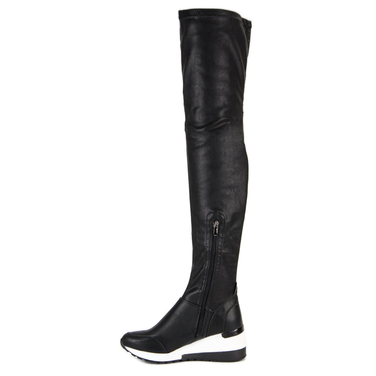 Čizme iznad koljena ističu žensku figuru dajući joj seksi karakter. Izrađene od visokokvalitetne crne kože, ne samo da su elegantne, već i vrlo lake za održavanje, što ih čini nezamjenjivim elementom vaše garderobe.
