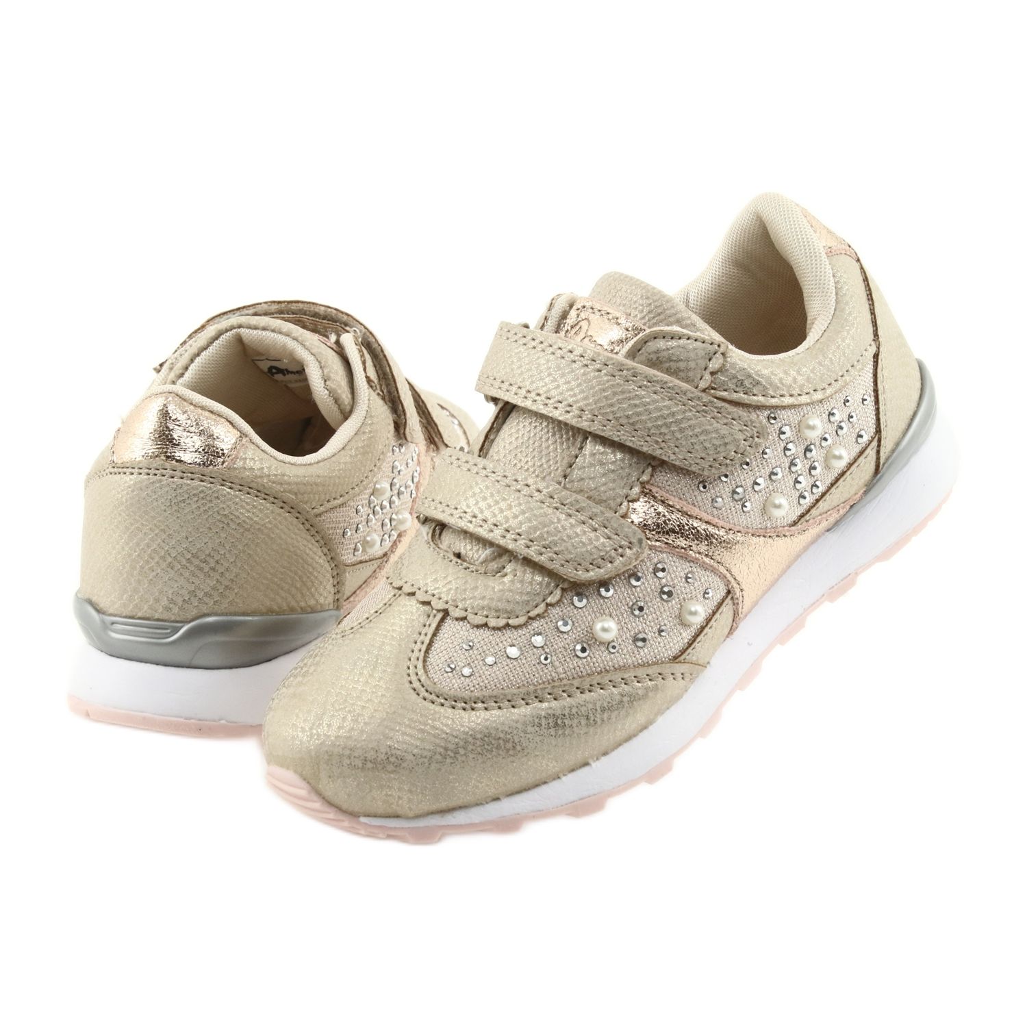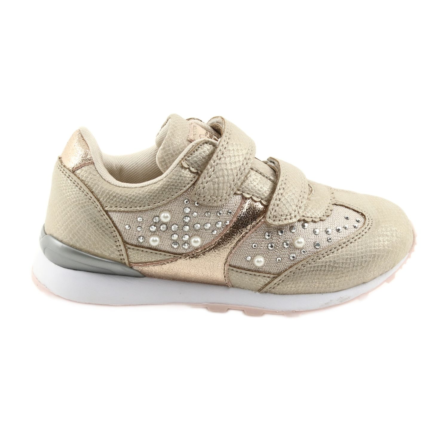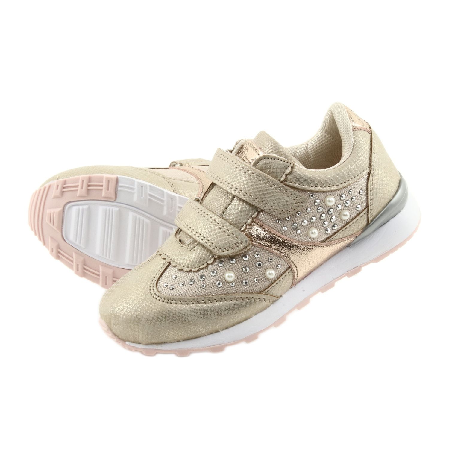 American Club ES19 sportske cipele za djevojčice u zlatnoj boji savršen su izbor za male ljubitelje aktivnosti. Izrađene od visokokvalitetnih materijala koji kombiniraju tekstil i ekološku kožu, osiguravaju udobnost i izdržljivost. Zahvaljujući podstavi i tekstilnom umetku, svaki korak postaje užitak.
