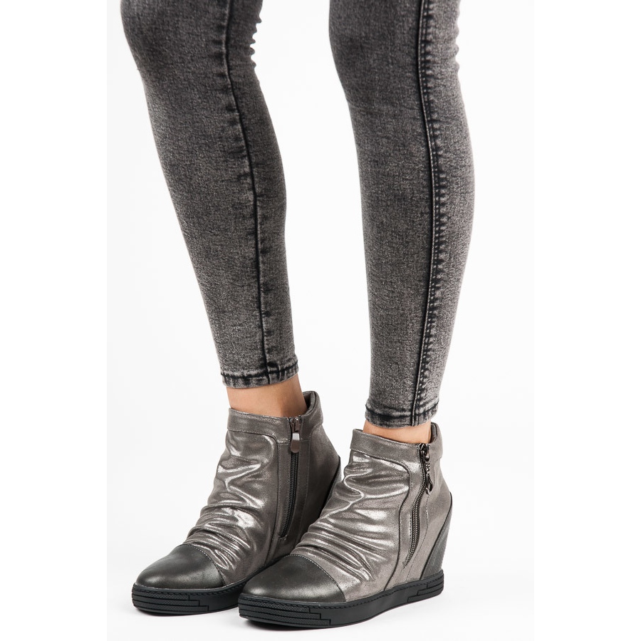Otkrijte eleganciju i udobnost s gležnjačama na wedge iz Vinceze! Ove sive, srebrne gležnjače savršen su izbor za modernu ženu koja cijeni stil i udobnost. Izrađene od ekološke kože, oduševljavaju ne samo svojim modernim izgledom, već i svojom praktičnošću.