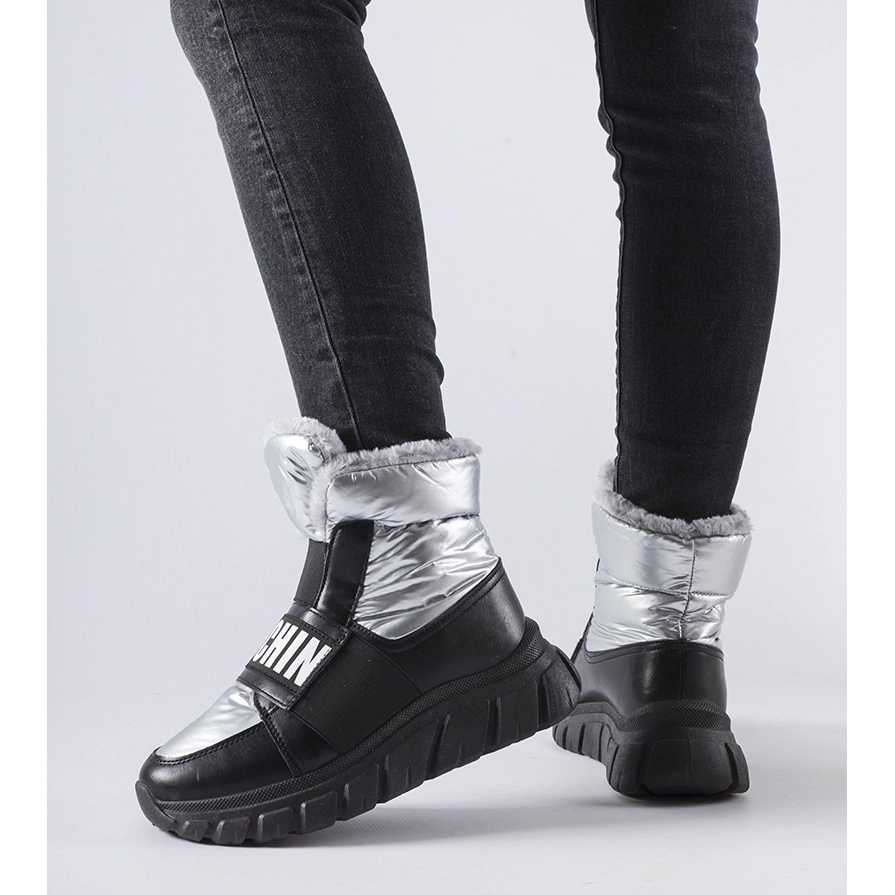 Njihov moderni dizajn, obogaćen modernom platformom i okruglim nosom, daje im elegantan izgled koji će zasigurno privući pažnju. Klizni rez olakšava brzo stavljanje i uklanjanje cipela, što je neprocjenjivo u teškim vremenskim uvjetima. Unutrašnjost završena krznom dodaje ugodnost, a srebrna boja naglašava stil i individualnost svake žene.
