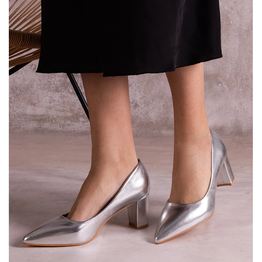 Srebrne metalne pumpe na post modelu FB-294 prijedlog je koji će zasigurno privući pažnju i dodati sjaj bilo kojoj stilizaciji. Izrađene od visokokvalitetne ekološke kože, ove elegantne cipele skladno kombiniraju moderan dizajn i klasični oblik. Njihova visoka kvaliteta materijala znači da ne samo da izgledaju sjajno, već i pružaju udobnost za duge sate.