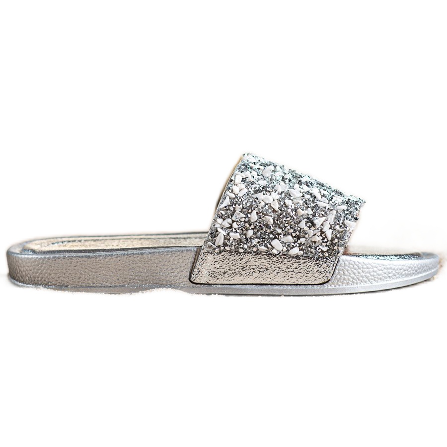 Small Swan Small Swan Srebrne papuče s kristalima siva