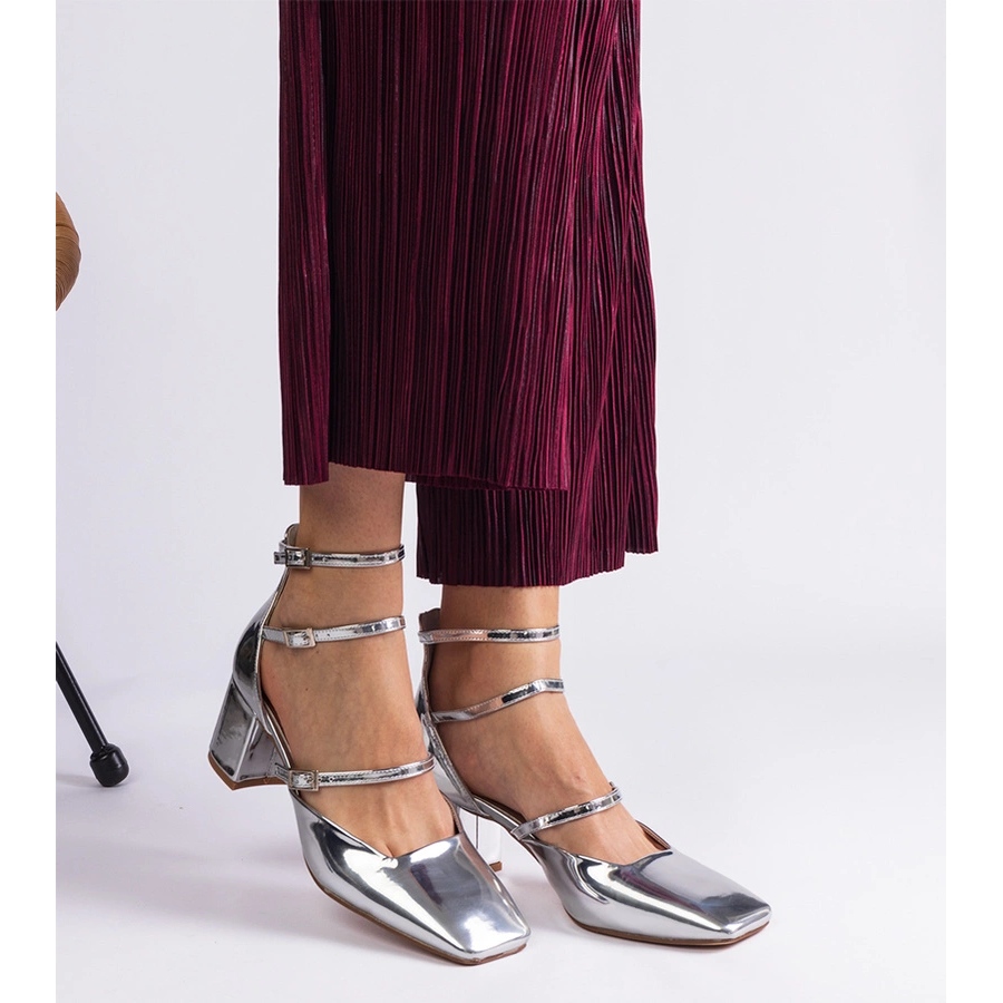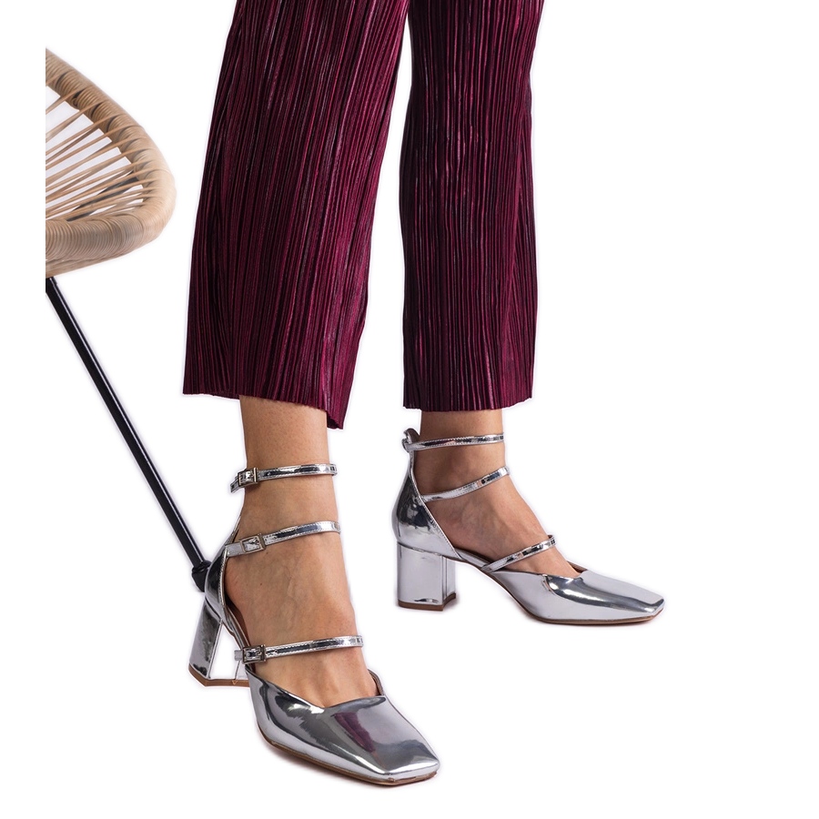 Inna marka Srebrne pumpe lakirane na posta sa kopčama srebro