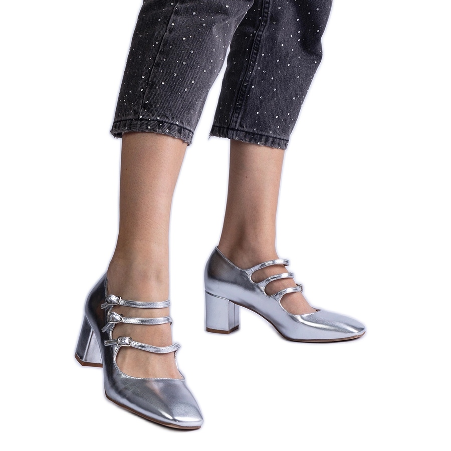 Inna marka Srebrne pumpe na posta s ukrasnim metalnim kopčama srebro