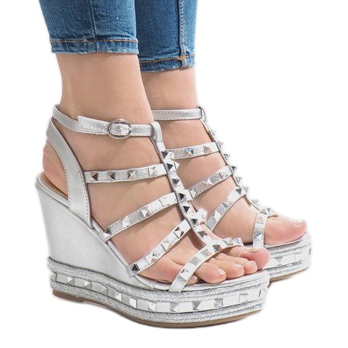 Pojedinosti: Srebrne sandale na klin VS-368 siva