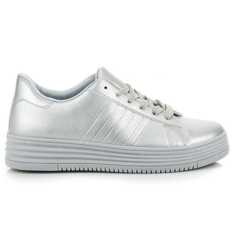 Izrađene od visokokvalitetne ekološke kože, tenisice izgledaju elegantno zahvaljujući svojoj metalik završnici. Njihova univerzalna siva boja savršeno ih pristaje uz razne stilove - kako sportske tako i casual. Okrugli vrh osigurava udobnost nošenja, a niska obrada čini ih udobnima čak i tijekom dugog dana.