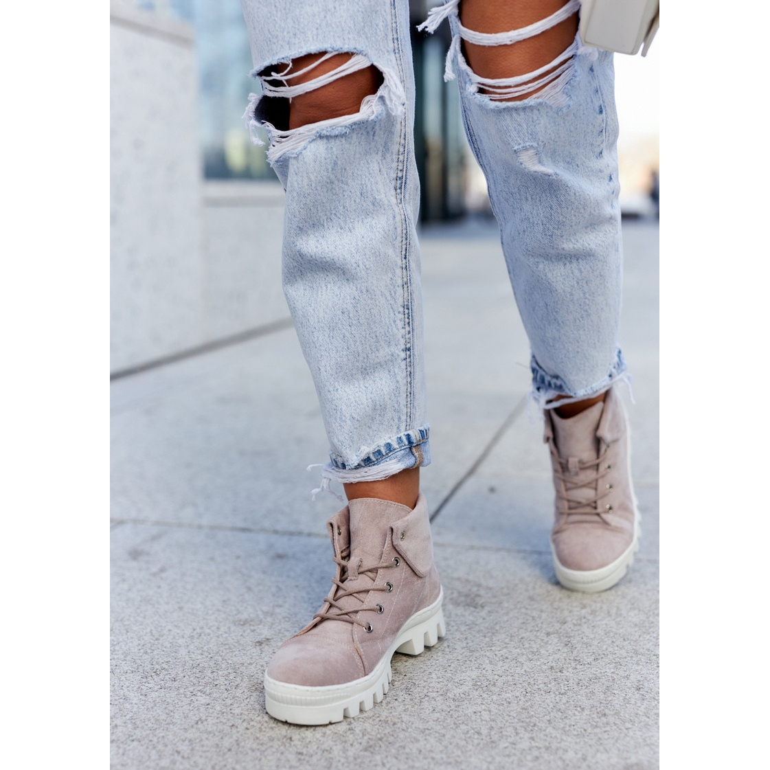 Stilske i udobne čizme koje će dodati lik povremenim setovima. Izrađena od ekološke antilop u modernoj, laganoj padu. Postavite na debeli, rezani potplat, s zaobljenim, ukočenim nosom i vezanjem za okrugle čipke. Gornji doseg do gležnja i lagano je valjana, što je naglašava njihov grad, neformalni karakter.