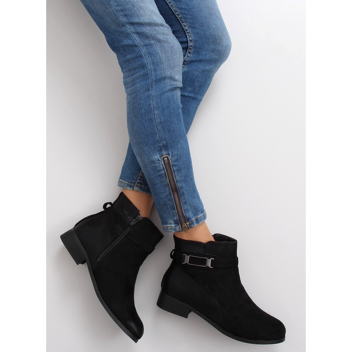 Pojedinosti: Suede Jodhpur čizme W148 crne crna